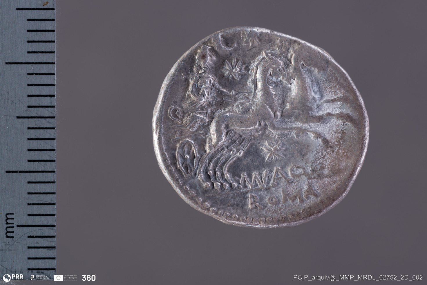 Matéria/Técnica: Prata; Cronologia: 109 ou 108 a.C.; Autoria: Desconhecida; Dimensões: Desconhecida.