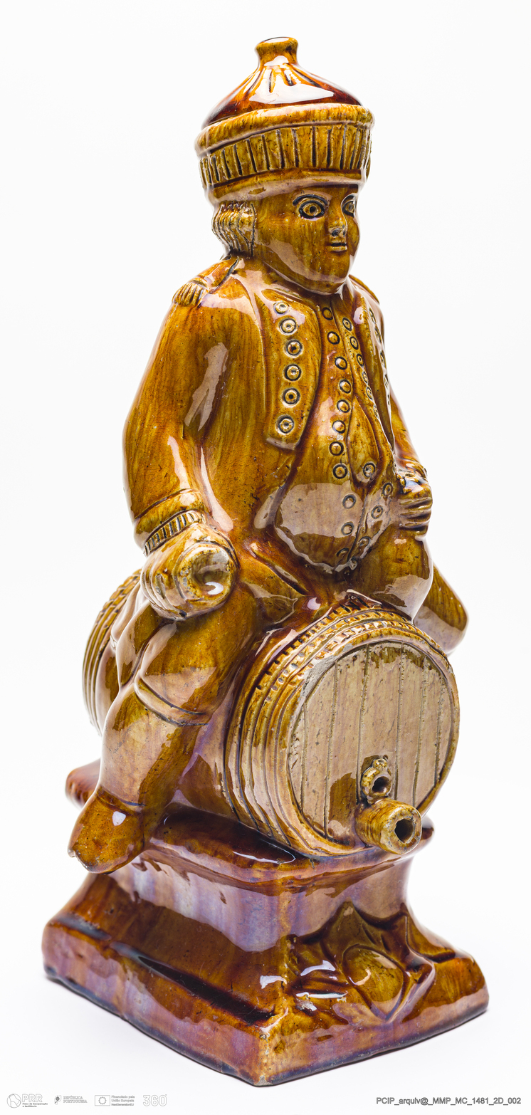 Matéria/Técnica: Barro moldado. Vidrado monocromo castanho; Cronologia: século XIX; Autoria: Desconhecido / Atr. Caldas da Rainha; Dimensões (cm): Altura: 36,1; Largura: 15,7.
