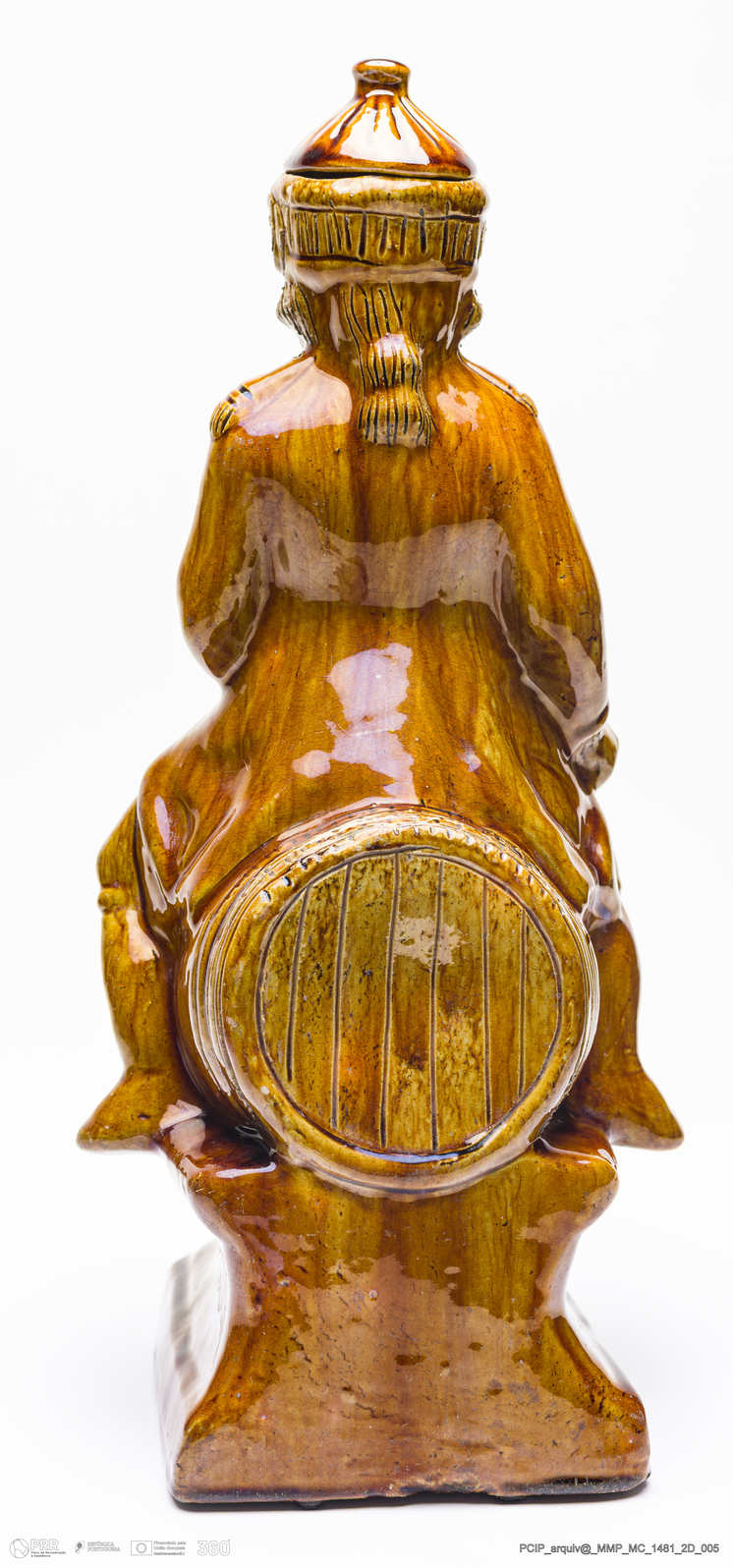 Matéria/Técnica: Barro moldado. Vidrado monocromo castanho; Cronologia: século XIX; Autoria: Desconhecido / Atr. Caldas da Rainha; Dimensões (cm): Altura: 36,1; Largura: 15,7.