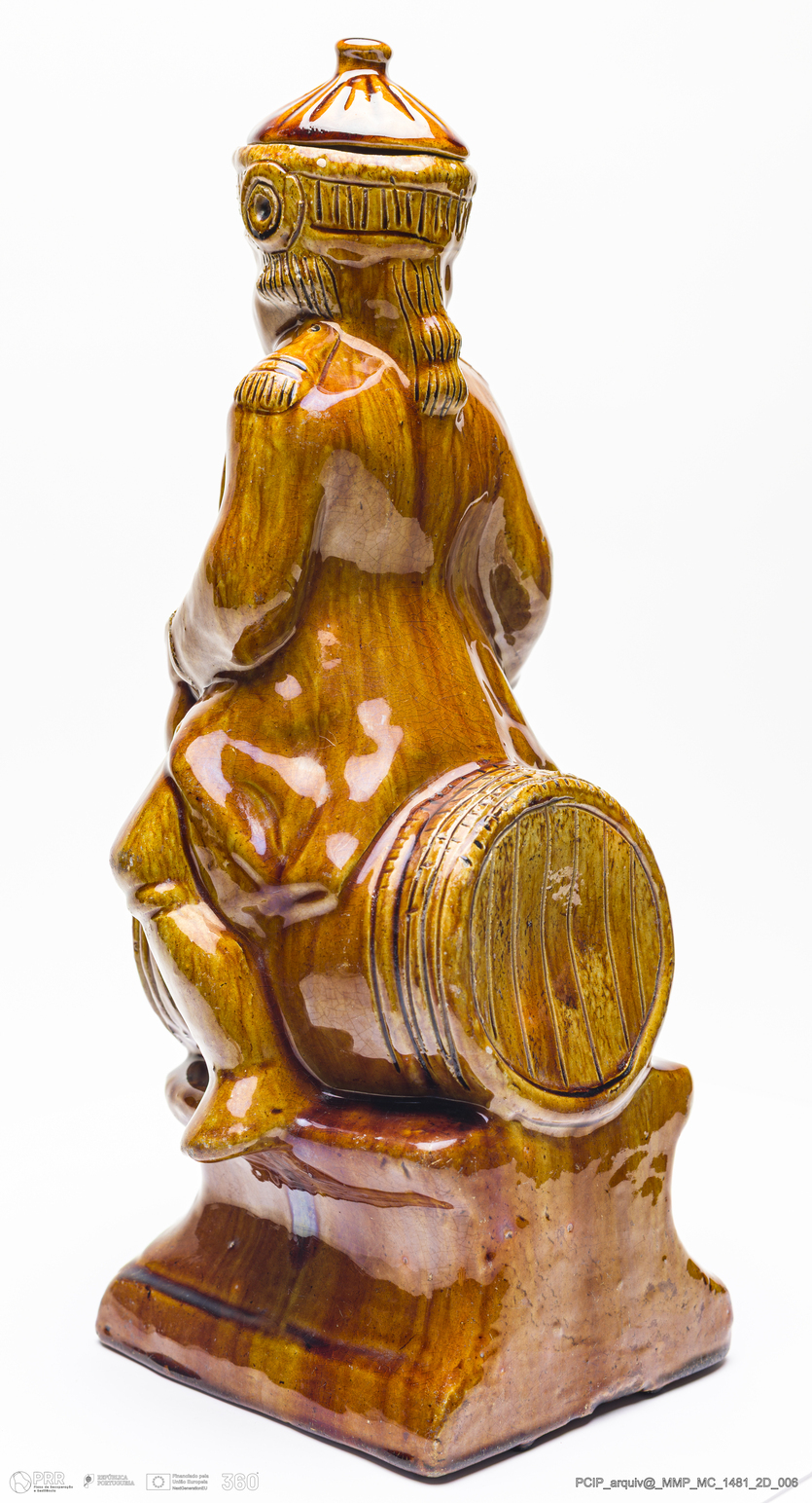 Matéria/Técnica: Barro moldado. Vidrado monocromo castanho; Cronologia: século XIX; Autoria: Desconhecido / Atr. Caldas da Rainha; Dimensões (cm): Altura: 36,1; Largura: 15,7.