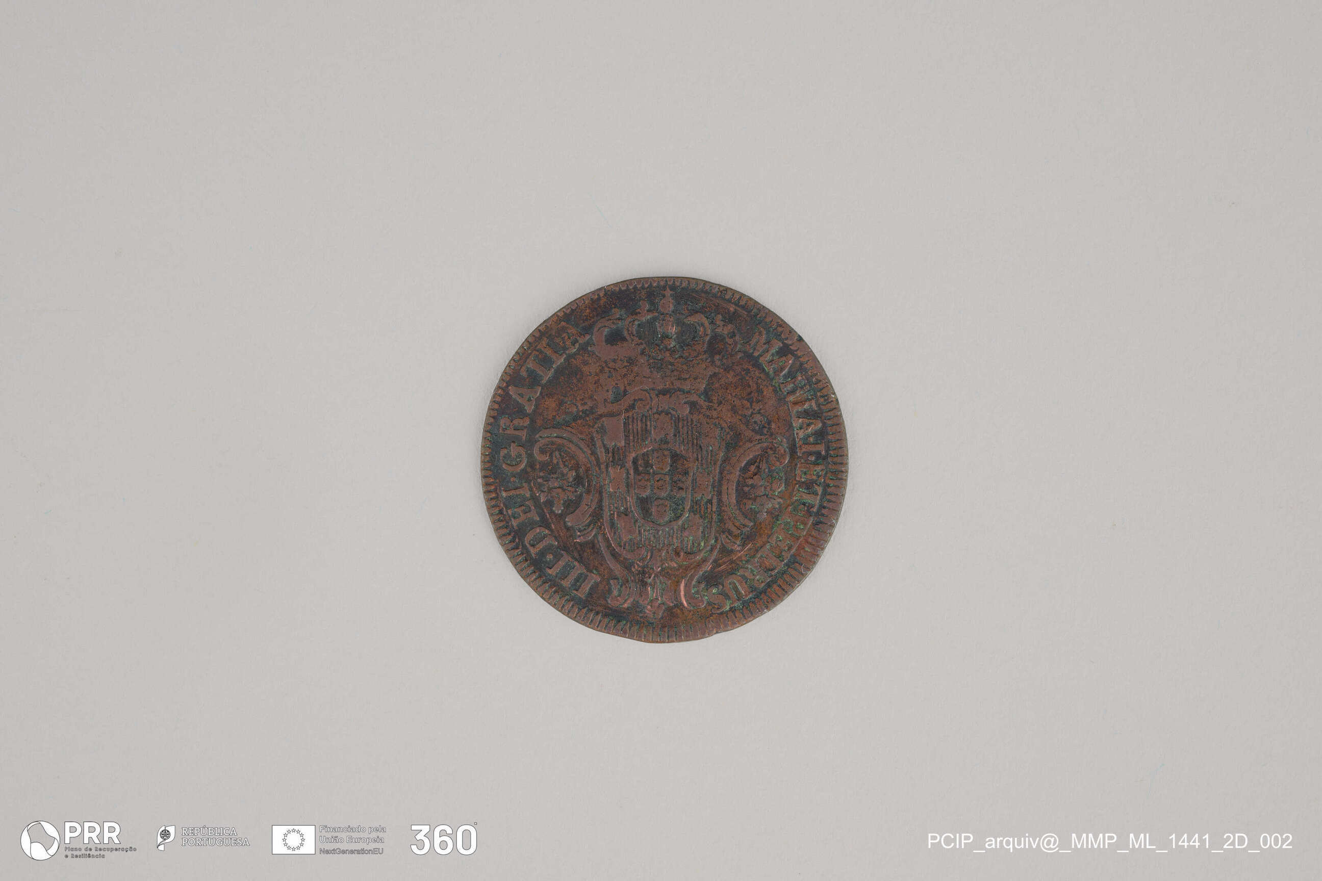 Matéria/Técnica: Cunhagem; Cronologia: 1777; Autoria: Desconhecida; Dimensões (cm): Diâmetro: 2,5.
