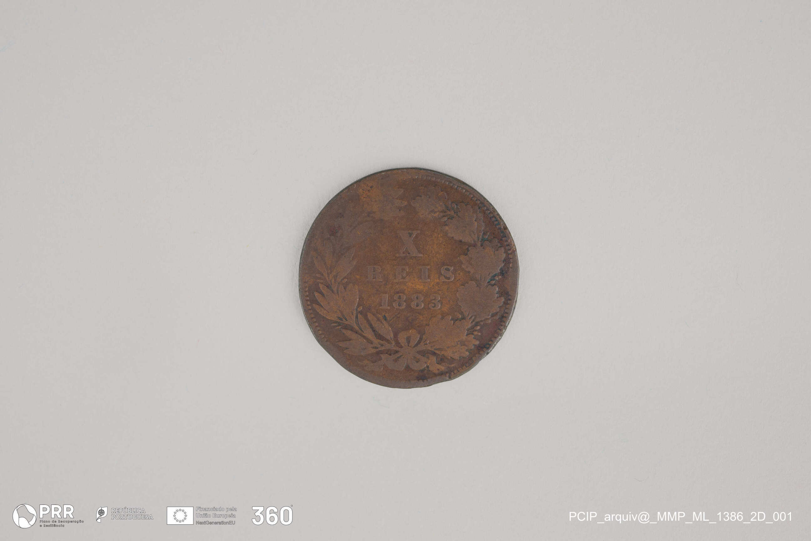 Matéria/Técnica: Cunhagem; Cronologia: 1883; Autoria: Desconhecida; Dimensões (cm): Diâmetro: 2,5.