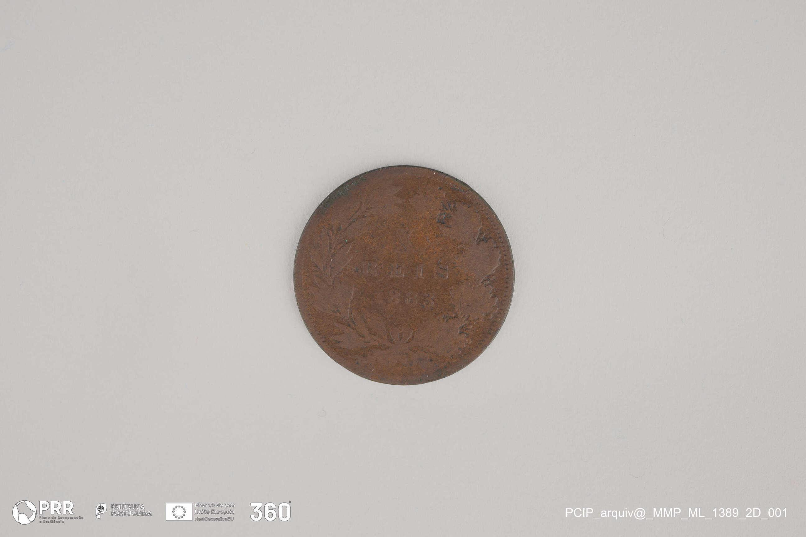 Matéria/Técnica: Cunhagem; Cronologia: 1883; Autoria: Desconhecida; Dimensões (cm): Diâmetro: 2,5.
