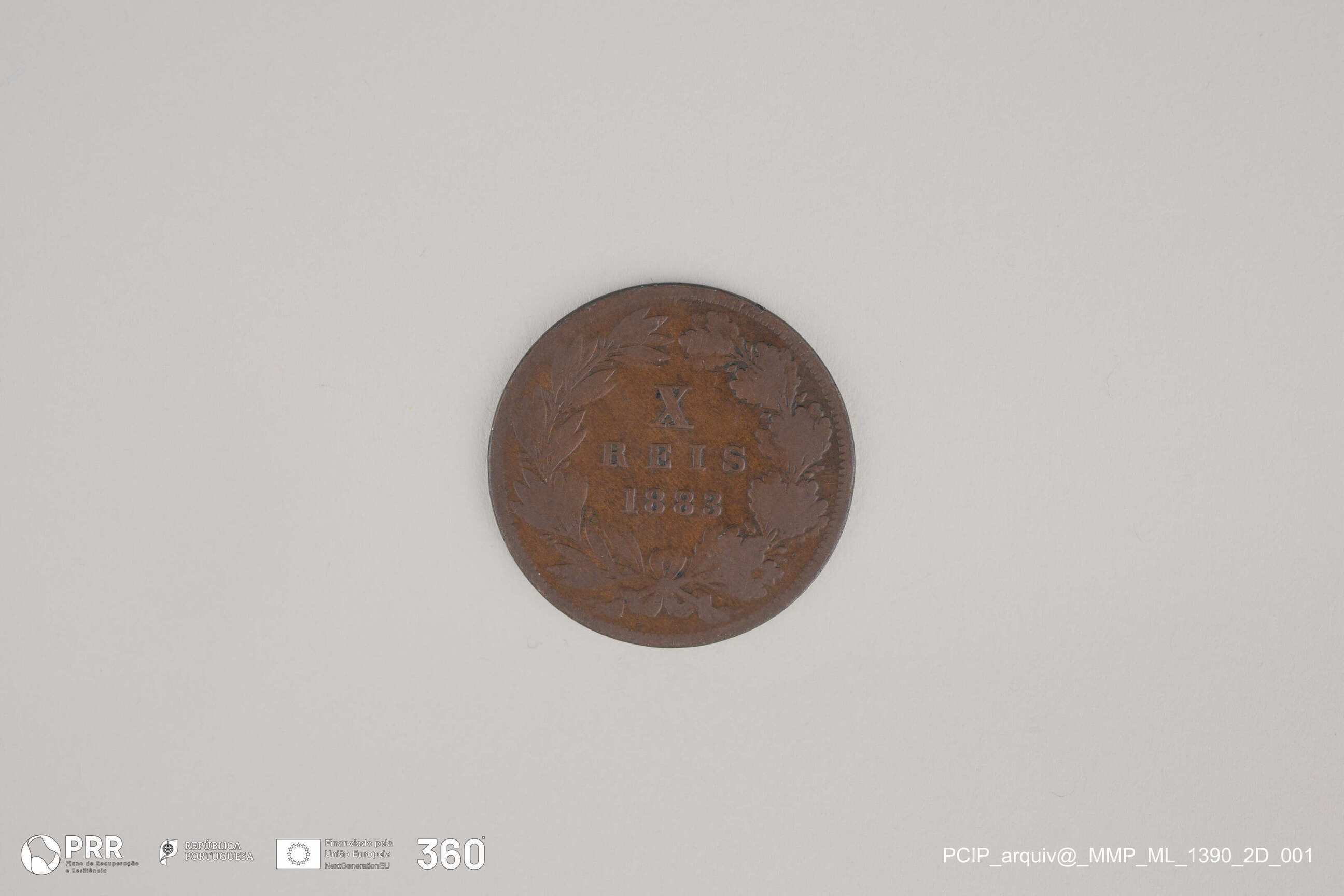 Matéria/Técnica: Cunhagem; Cronologia: 1883; Autoria: Desconhecida; Dimensões (cm): Diâmetro: 2,5.