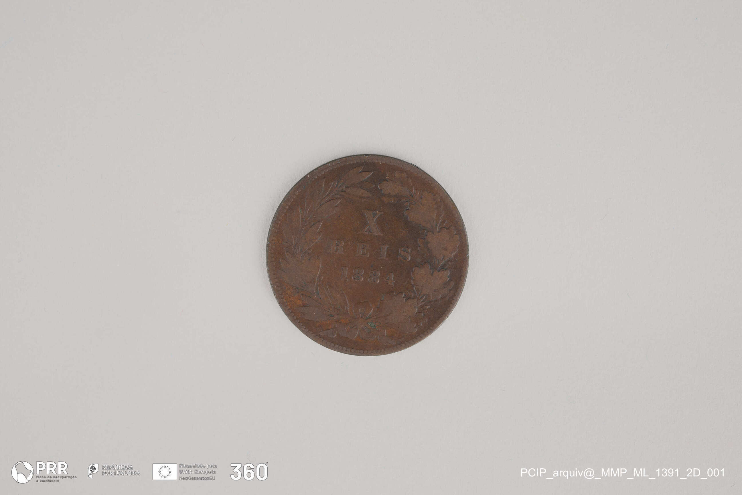 Matéria/Técnica: Cunhagem; Cronologia: 1884; Autoria: Desconhecida; Dimensões (cm): Diâmetro: 2,5.