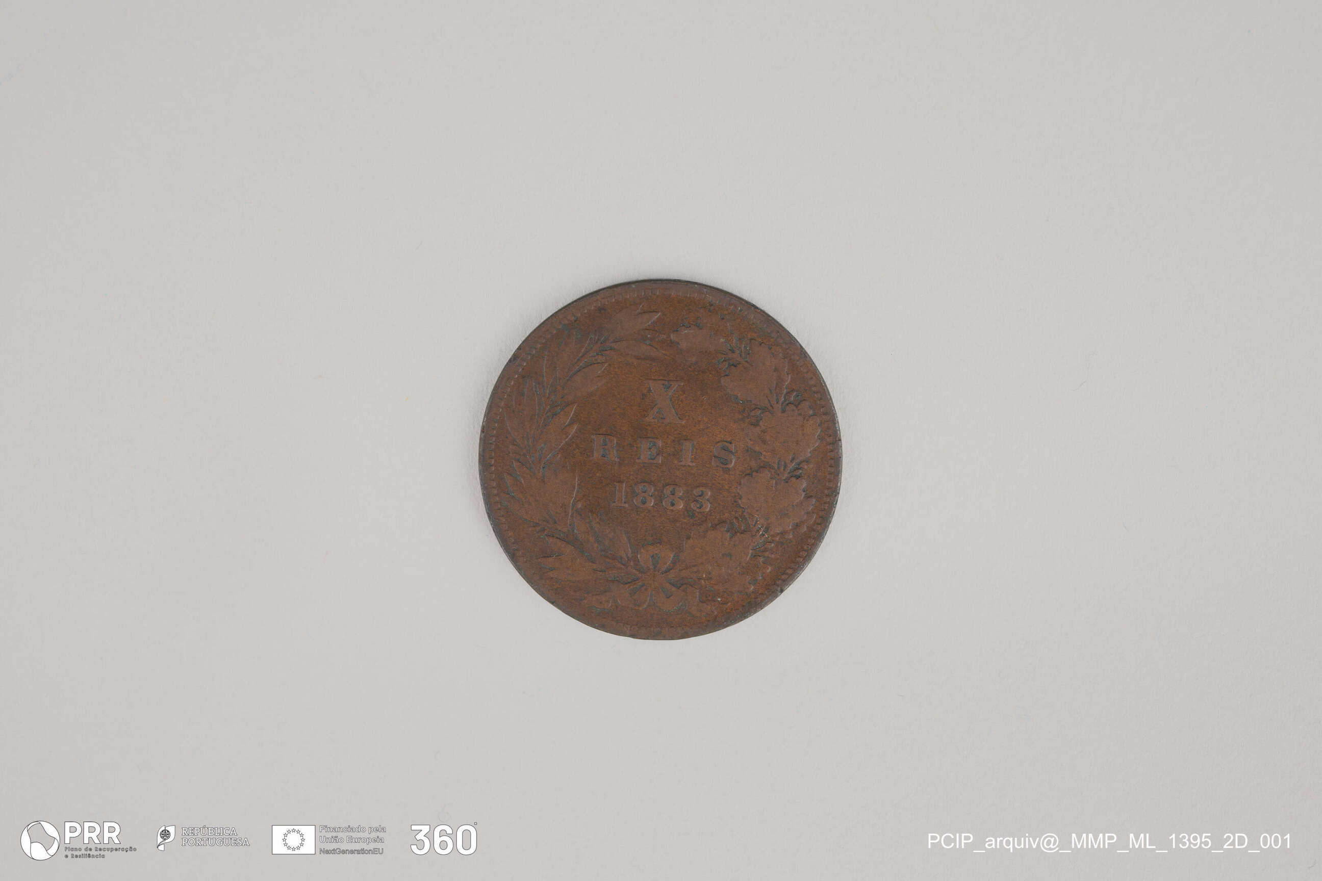 Matéria/Técnica: Cunhagem; Cronologia: 1883; Autoria: Desconhecida; Dimensões (cm): Diâmetro: 2,5.
