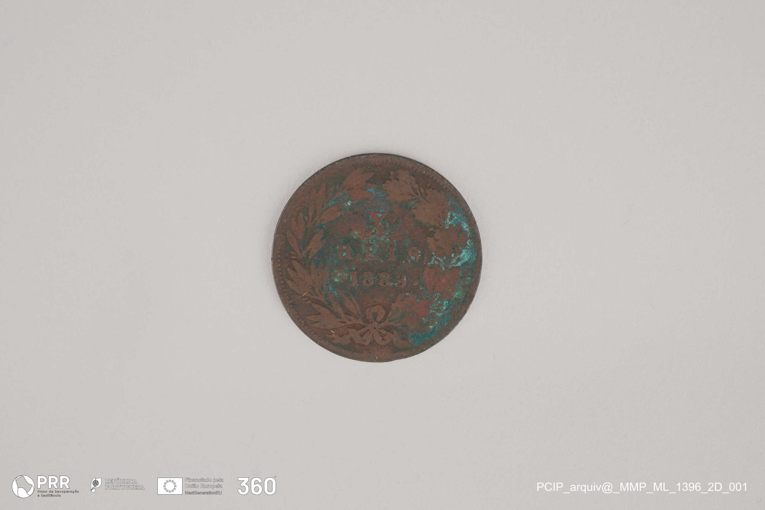 Matéria/Técnica: Cunhagem; Cronologia: 1883; Autoria: Desconhecida; Dimensões (cm): Diâmetro: 2,5.