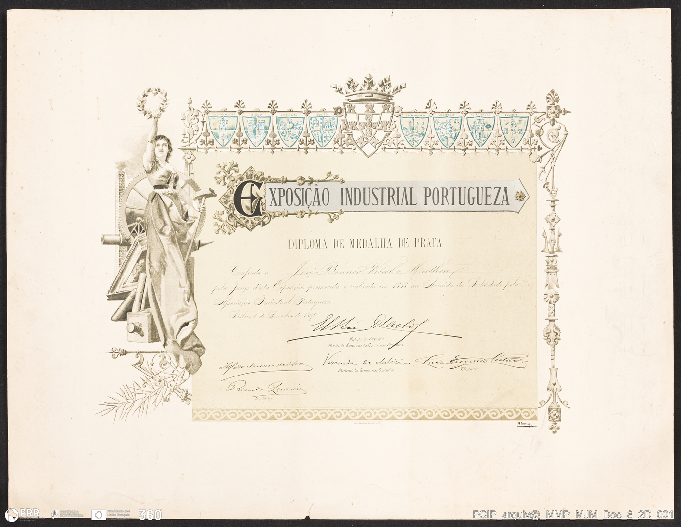 Documento simples. MJM_Doc_8_2D_001 - Diploma. Exposição Industrial Portuguesa - Medalha de Prata