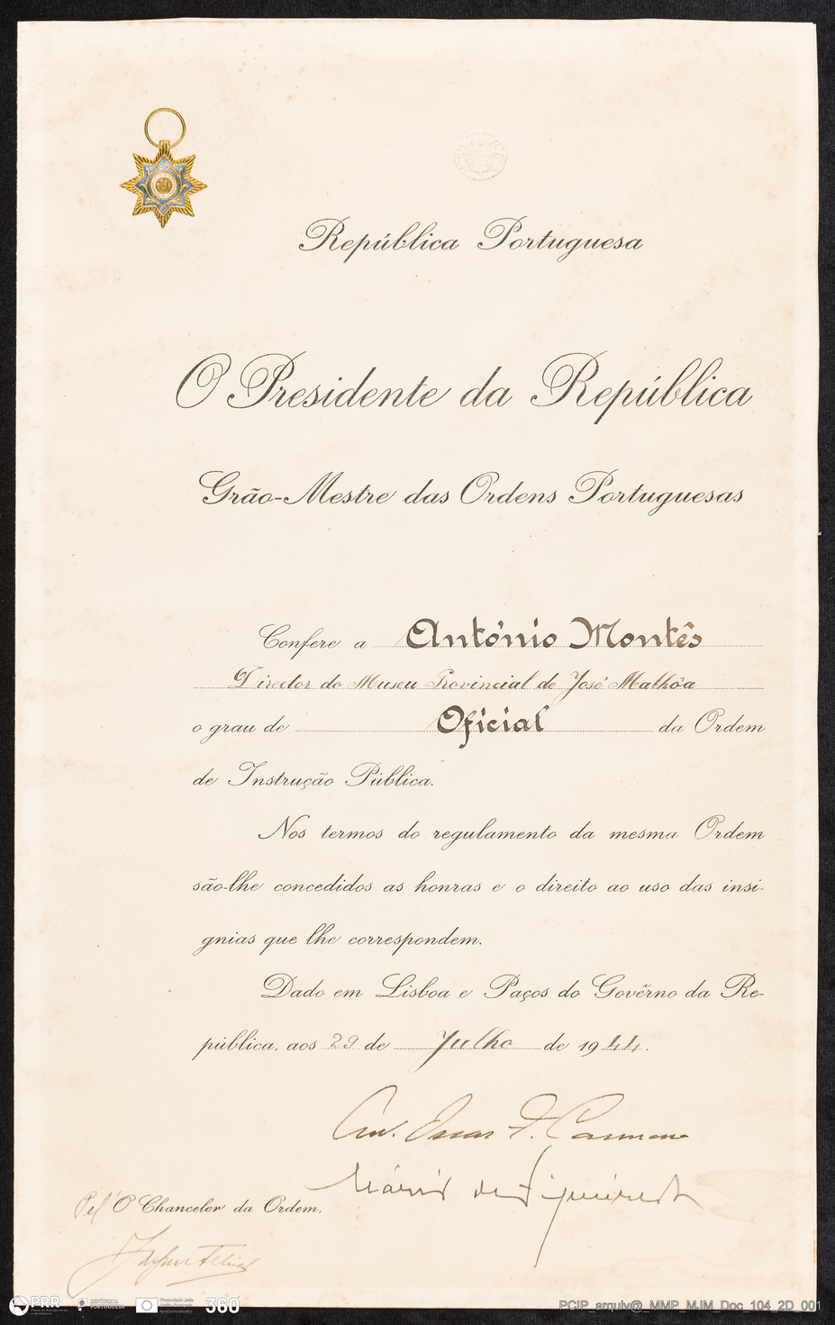 Diploma. Ordem de Instrução Pública