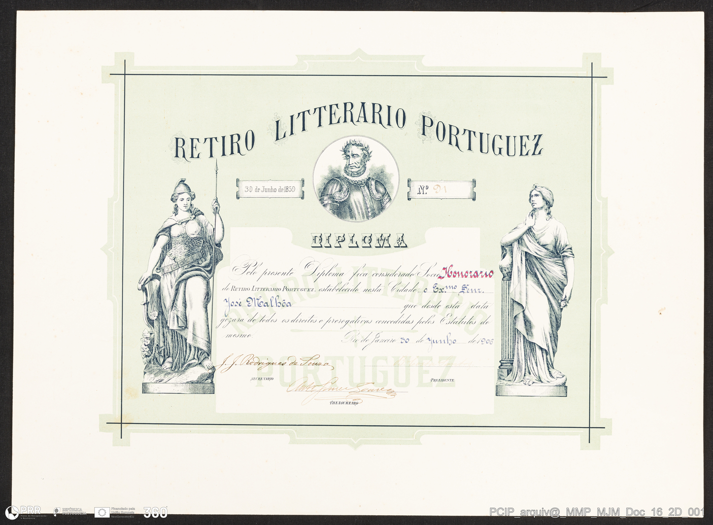 Diploma. Retiro Literário Português do Rio de Janeiro. Sócio Honorário