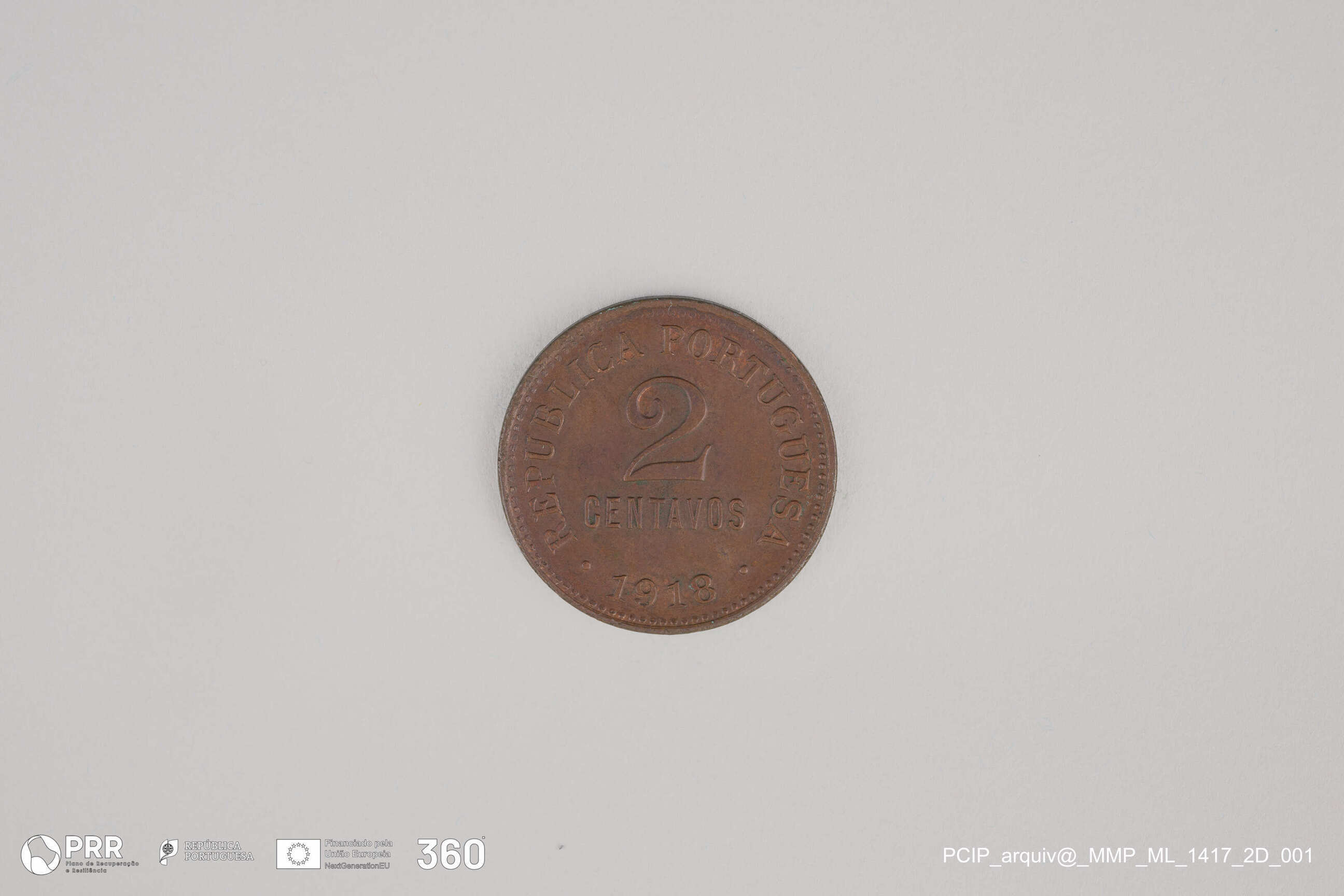 Matéria/Técnica: Cunhagem; Cronologia: 1918; Autoria: Desconhecida; Dimensões (cm): Diâmetro: 2,3.