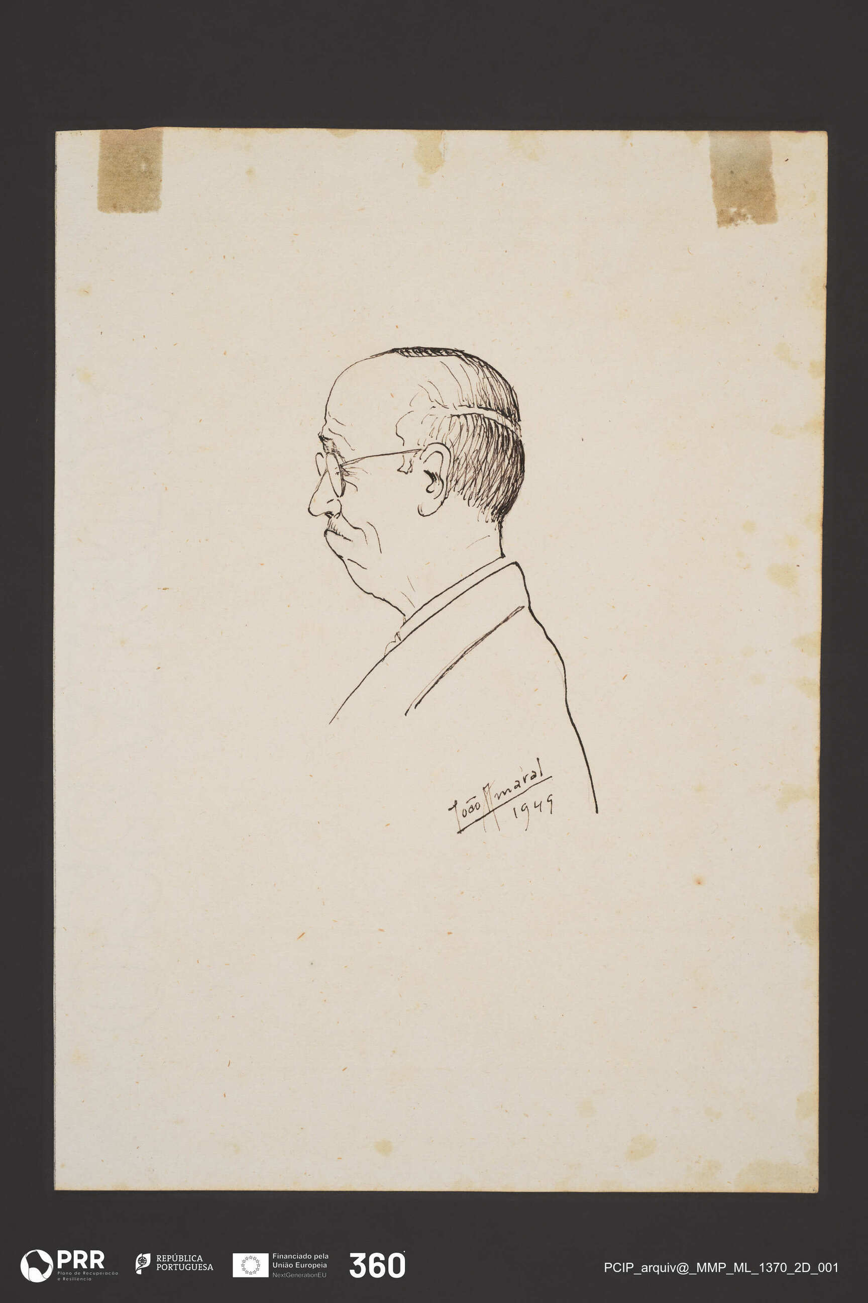 Matéria/Técnica: Desenho à pena; Cronologia: 1949; Autoria: Amaral, João (1874 - 1955); Dimensões (cm): Altura: 21,5 x Largura: 15,5.