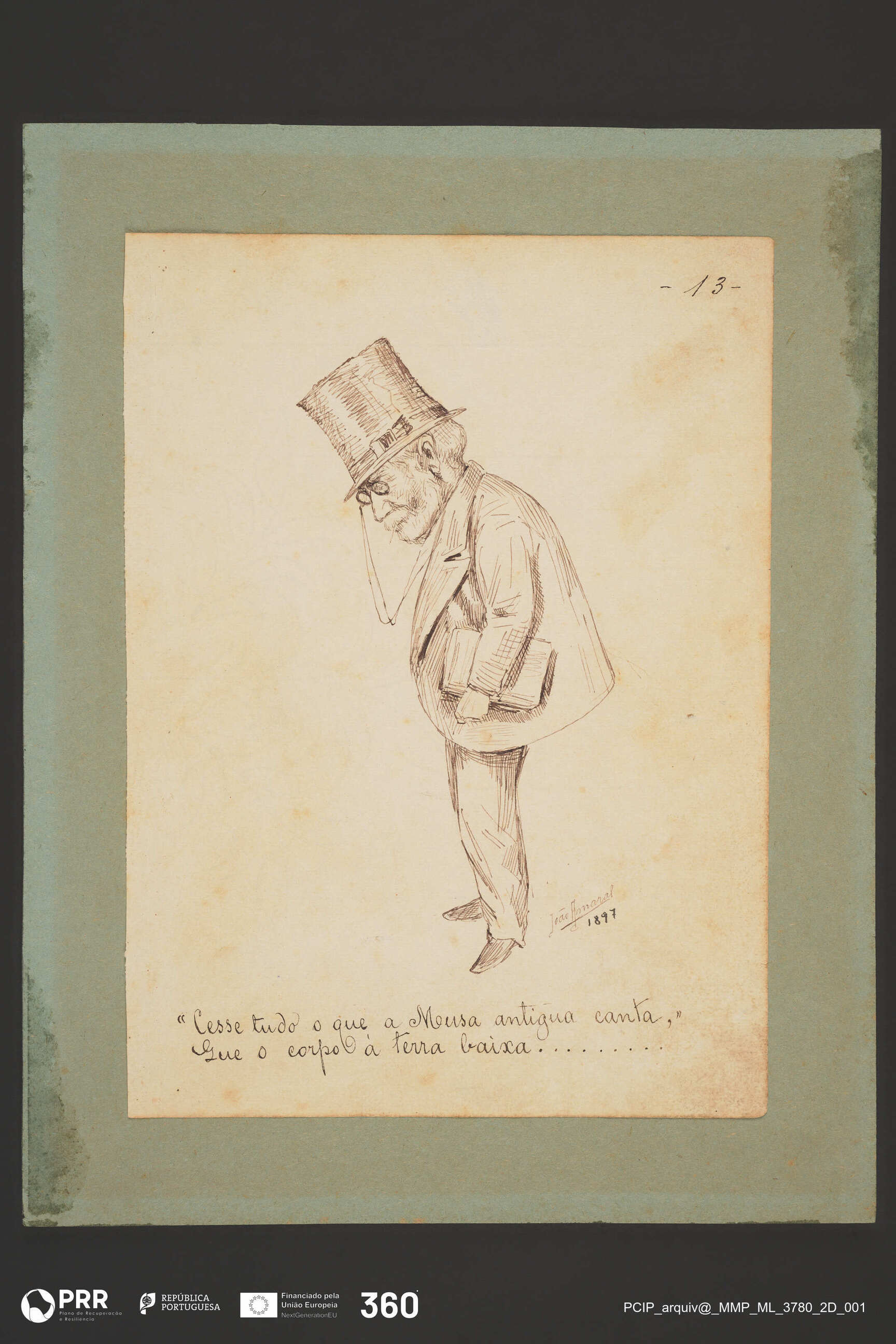 Matéria/Técnica: Desenho à pena; Cronologia: 1897; Autoria: Amaral, João (1874 - 1955); Dimensões (cm): Altura: 21,6 x Largura: 15,6.