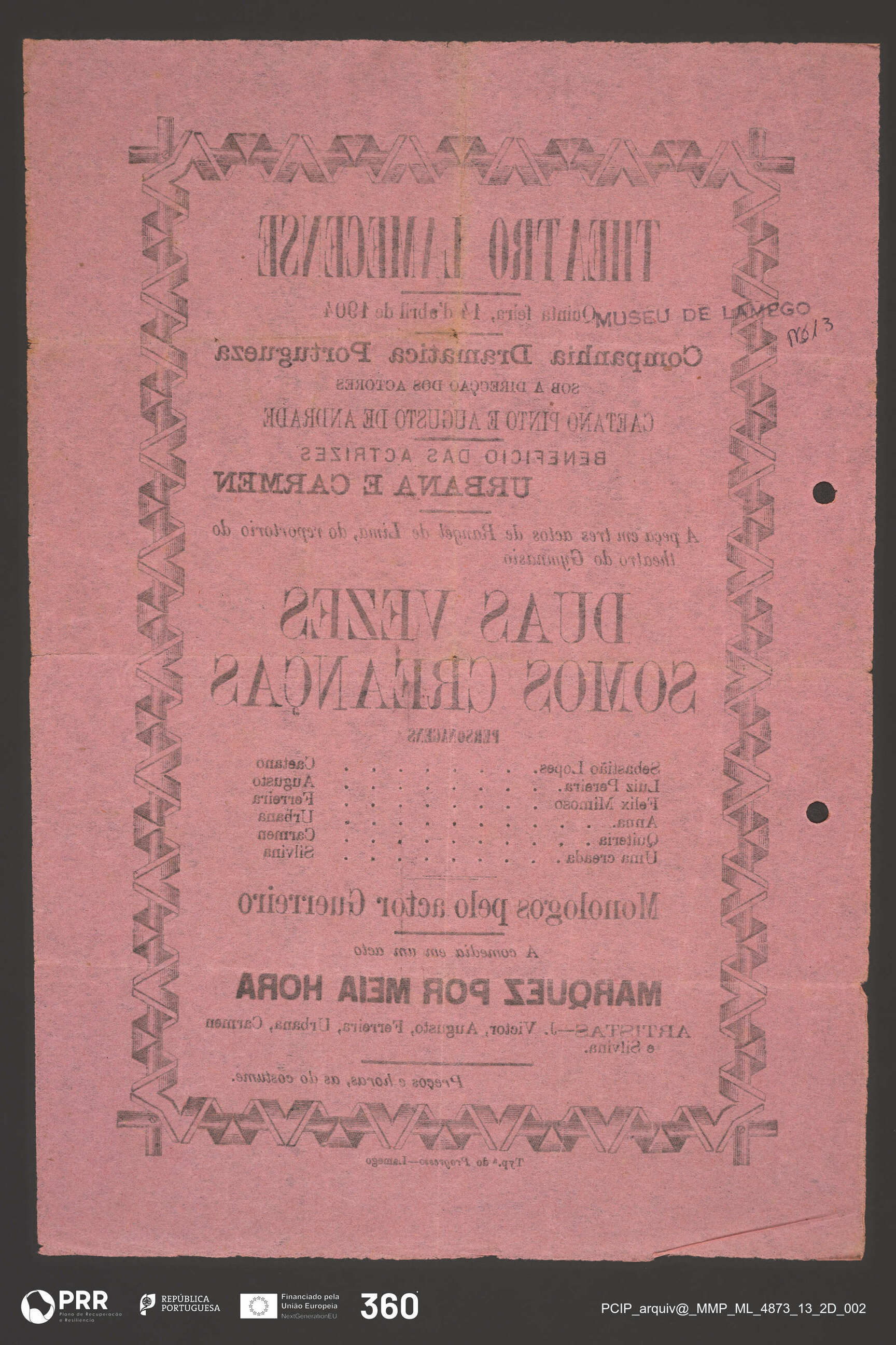 Matéria/Técnica: Impressão; Cronologia: 1904; Autoria: Desconhecida; Dimensões (cm): Altura: 30,9 x Comprimento: 21,3.