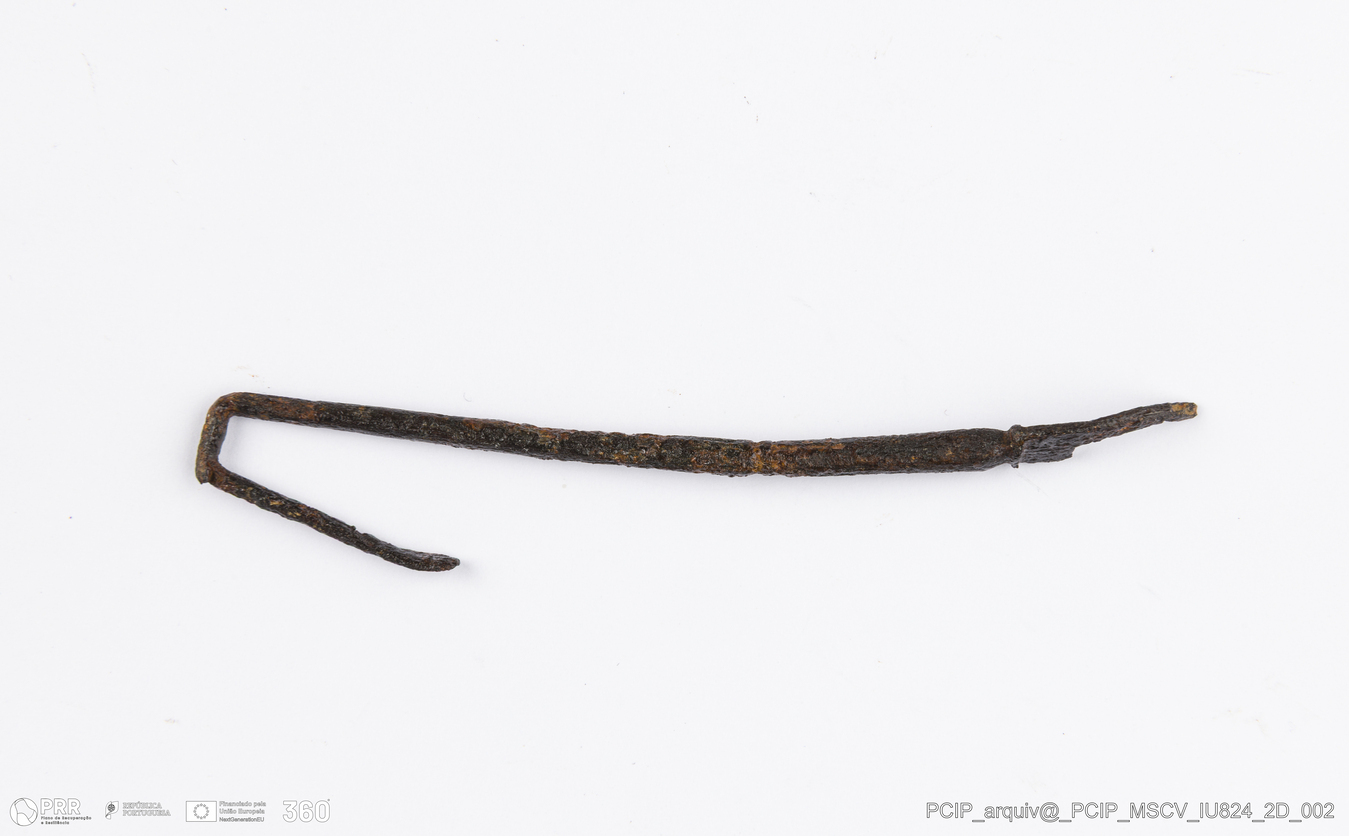 Matéria/Técnica: Metal; Cronologia: Século XVII; Autoria: Desconhecida; Dimensões: Comprimento: 78,5mm; Largura: 12,5mm; Espessura: 4mm.
