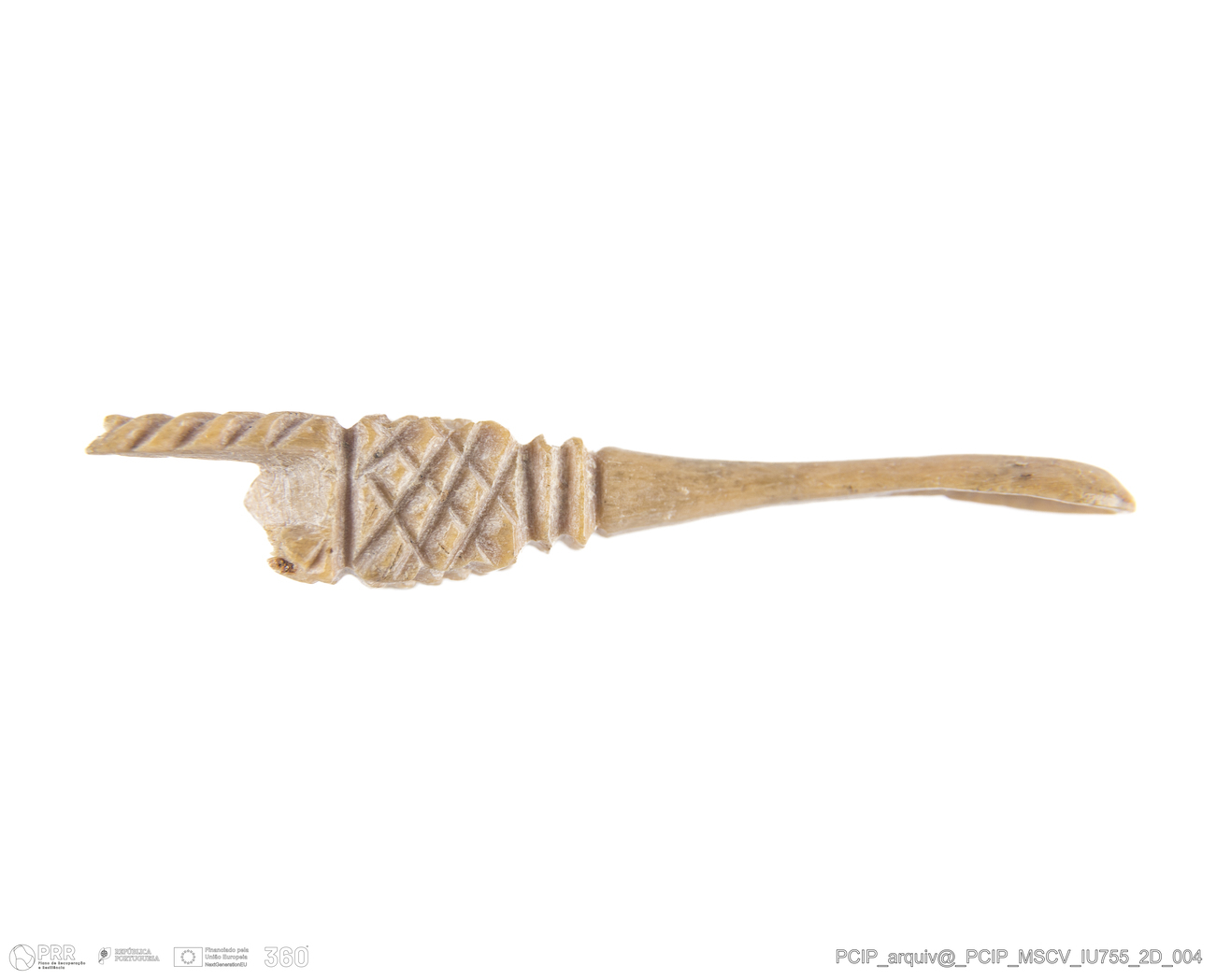 Matéria/Técnica: Marfim; Cronologia: Século XVII; Autoria: Desconhecida; Dimensões: Comprimento: 39mm; Largura: 7mm; Espessura: 6,5mm.