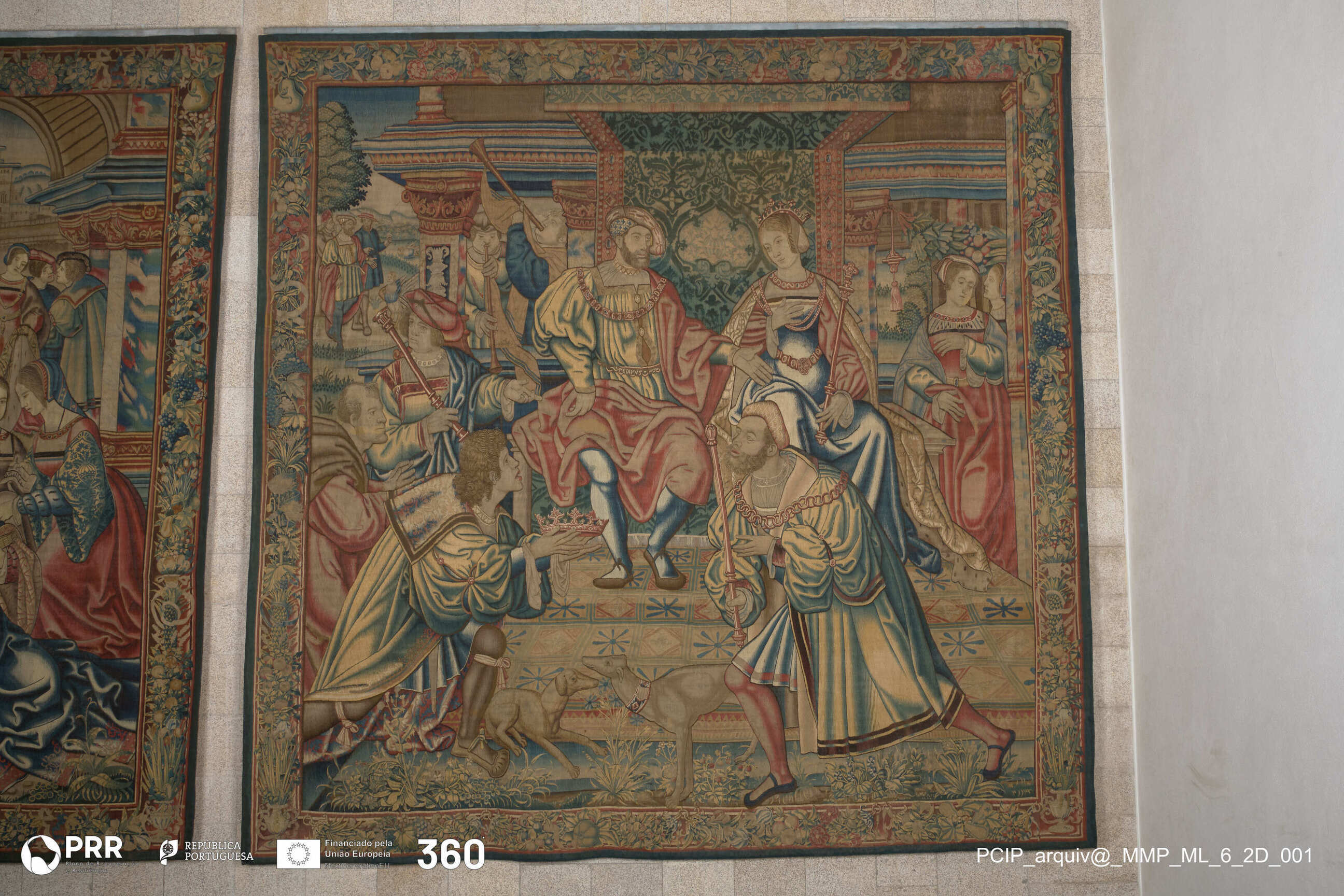 Matéria/Técnica: Tecelagem de alto liço; Cronologia: 1525-1535; Autoria: Aelst, Pieter van; Orley, Bernard van (ca.1488-1541); Dimensões (cm): Altura: 415 x Largura: 417.