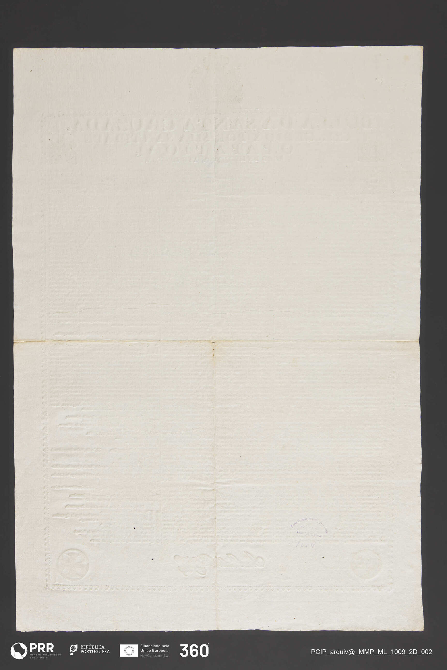 Matéria/Técnica: Impressão; Cronologia: 1789; Autoria: Papa Pio VI; Dimensões (cm): Altura: 59 x Largura: 41,2.