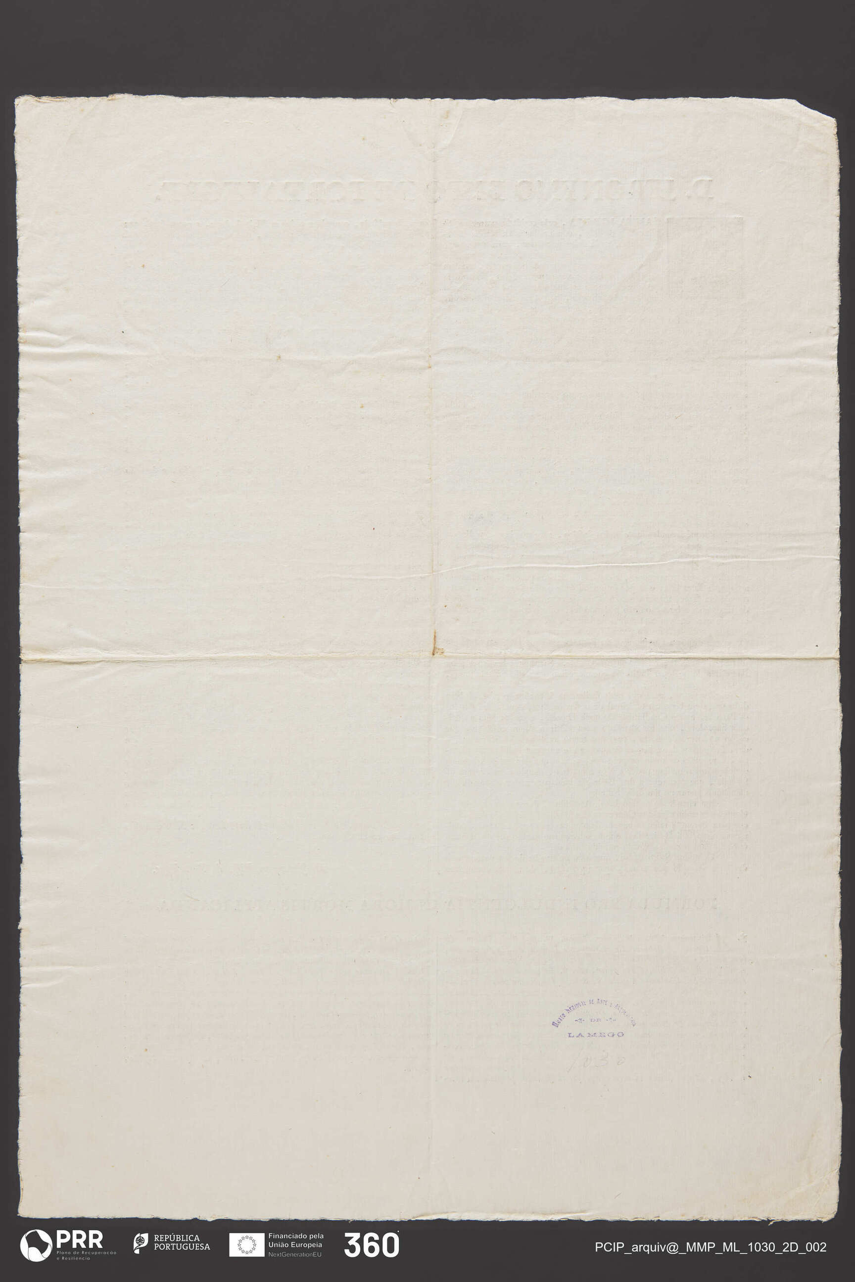 Matéria/Técnica: Impressão; Cronologia: 1770; Autoria: D. Jeronymo - Bispo de Portalegre; Dimensões (cm): Altura: 50,5 x Largura: 36,9.