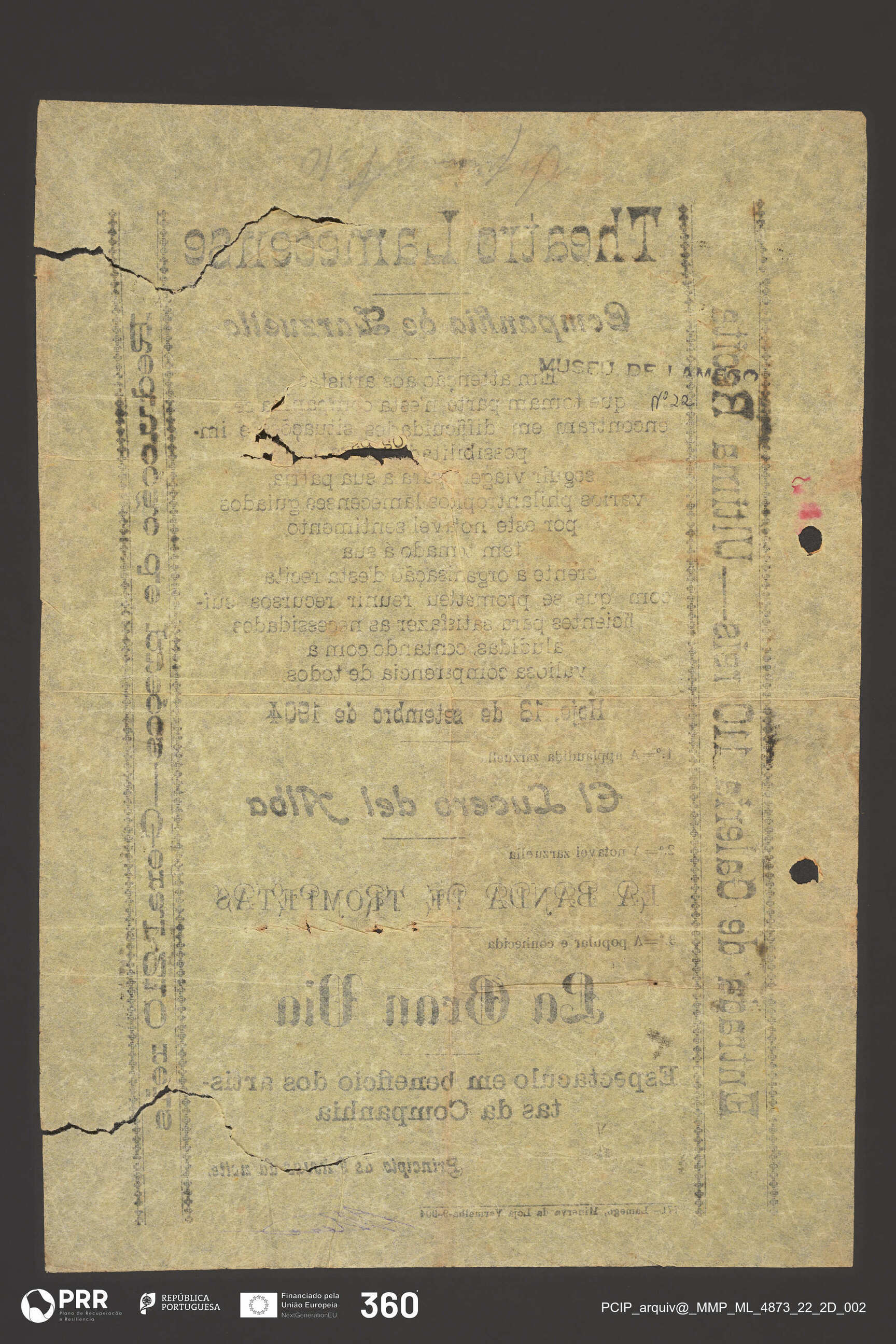 Matéria/Técnica: Impressão; Cronologia: 1904; Autoria: Desconhecida; Dimensões (cm): Altura: 28,7 x Comprimento: 20,3.