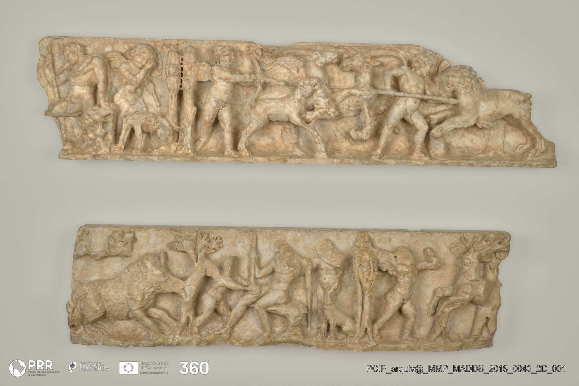 Matéria/Técnica: Mármore; Cronologia: Século III d.C; Autoria: Desconhecida; Dimensões (cm): 28 x 101 x 17.