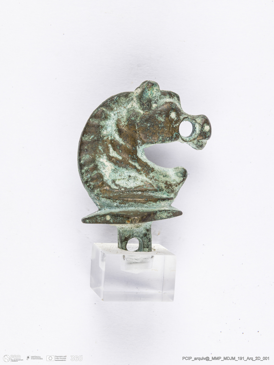 Matéria/Técnica: Bronze; Cronologia: Desconhecida; Autoria: Desconhecida; Dimensões: Altura: 4,2 cm x Espessura: 1 cm x Diâmetro: 2,4 cm; Dados: 1 cm.
