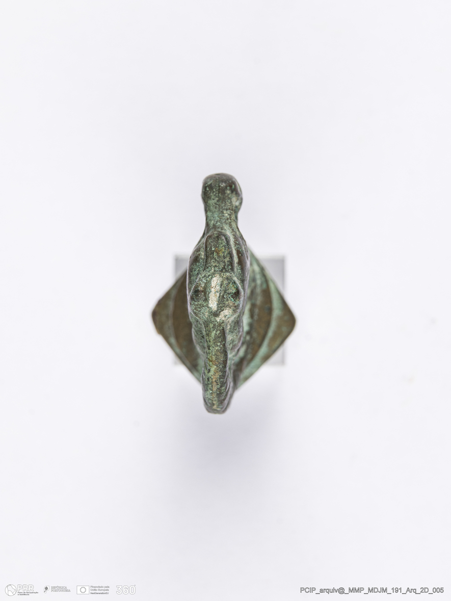 Matéria/Técnica: Bronze; Cronologia: Desconhecida; Autoria: Desconhecida; Dimensões: Altura: 4,2 cm x Espessura: 1 cm x Diâmetro: 2,4 cm; Dados: 1 cm.