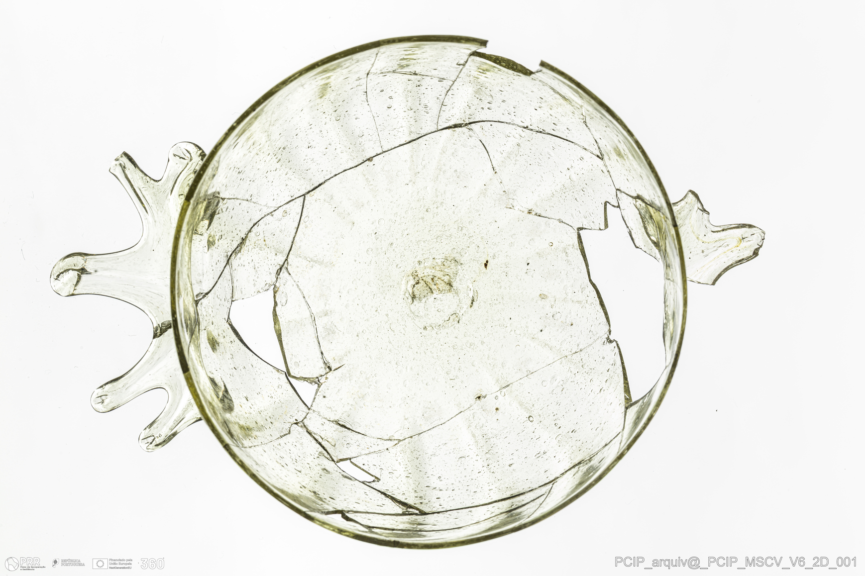 Matéria/Técnica: Vidro; Cronologia: Século XVII; Autoria: Desconhecida; Dimensões: Altura: 45mm; Diâmetro máximo: 95mm.