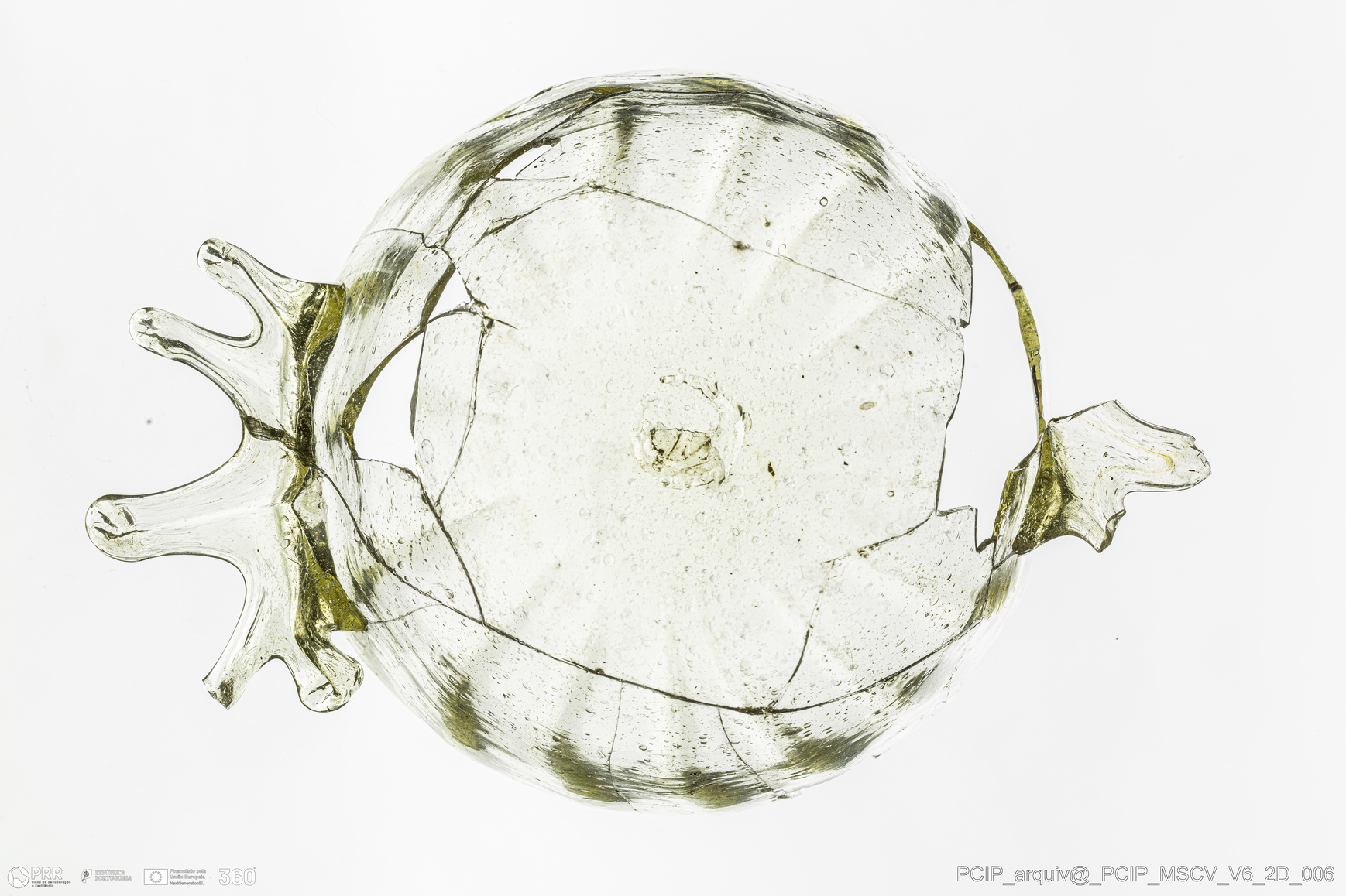 Matéria/Técnica: Vidro; Cronologia: Século XVII; Autoria: Desconhecida; Dimensões: Altura: 45mm; Diâmetro máximo: 95mm.
