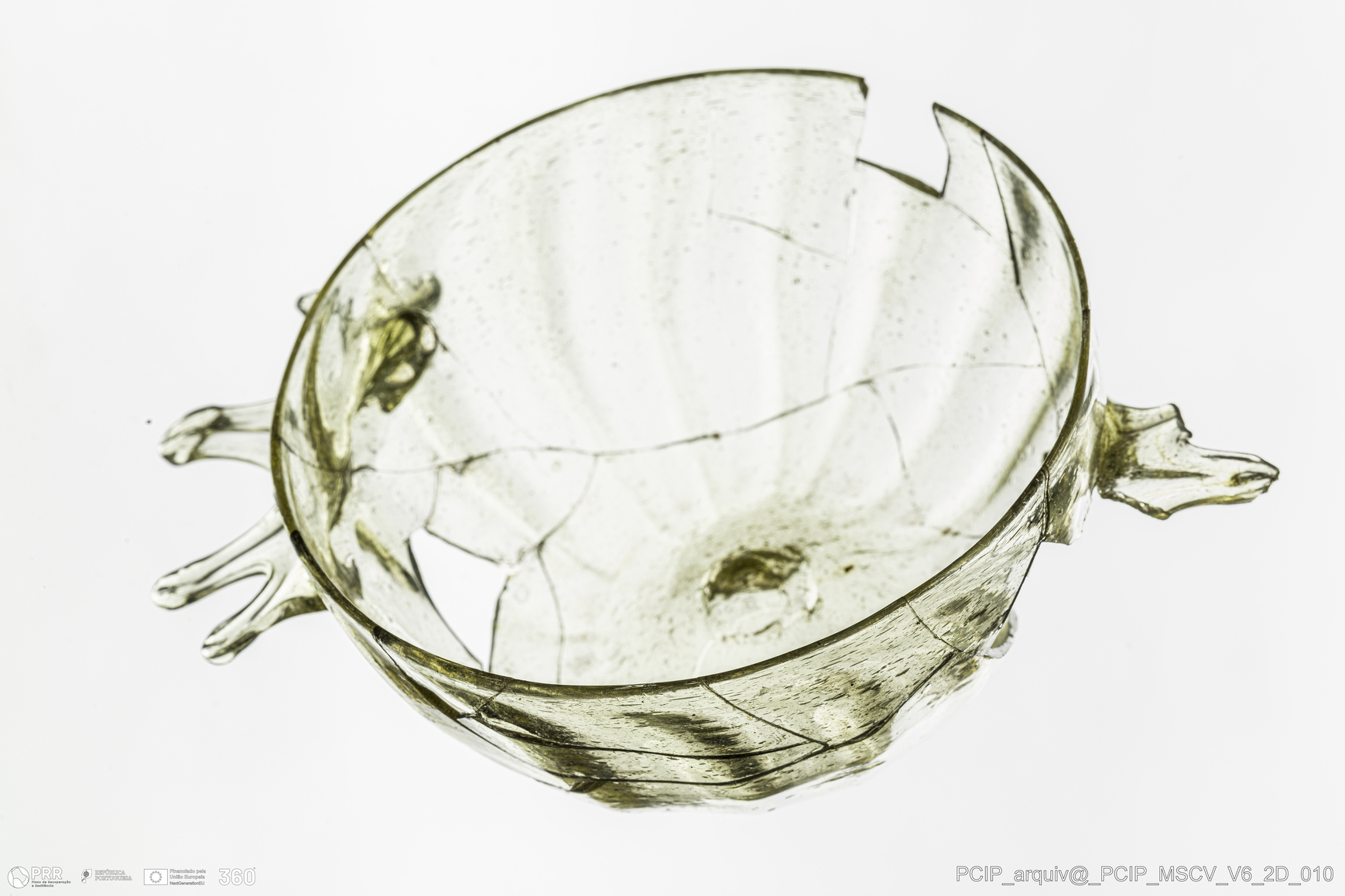 Matéria/Técnica: Vidro; Cronologia: Século XVII; Autoria: Desconhecida; Dimensões: Altura: 45mm; Diâmetro máximo: 95mm.