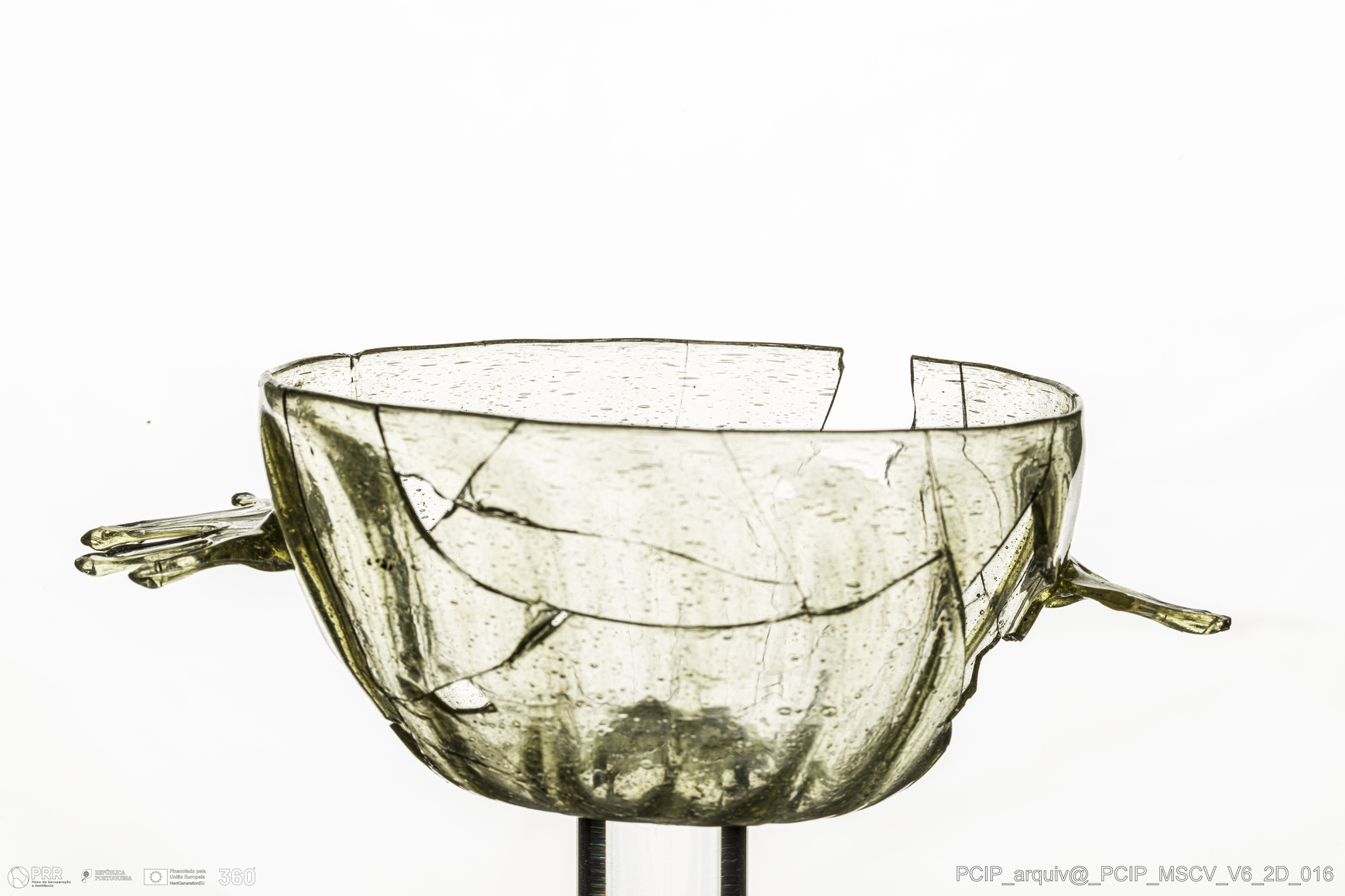 Matéria/Técnica: Vidro; Cronologia: Século XVII; Autoria: Desconhecida; Dimensões: Altura: 45mm; Diâmetro máximo: 95mm.
