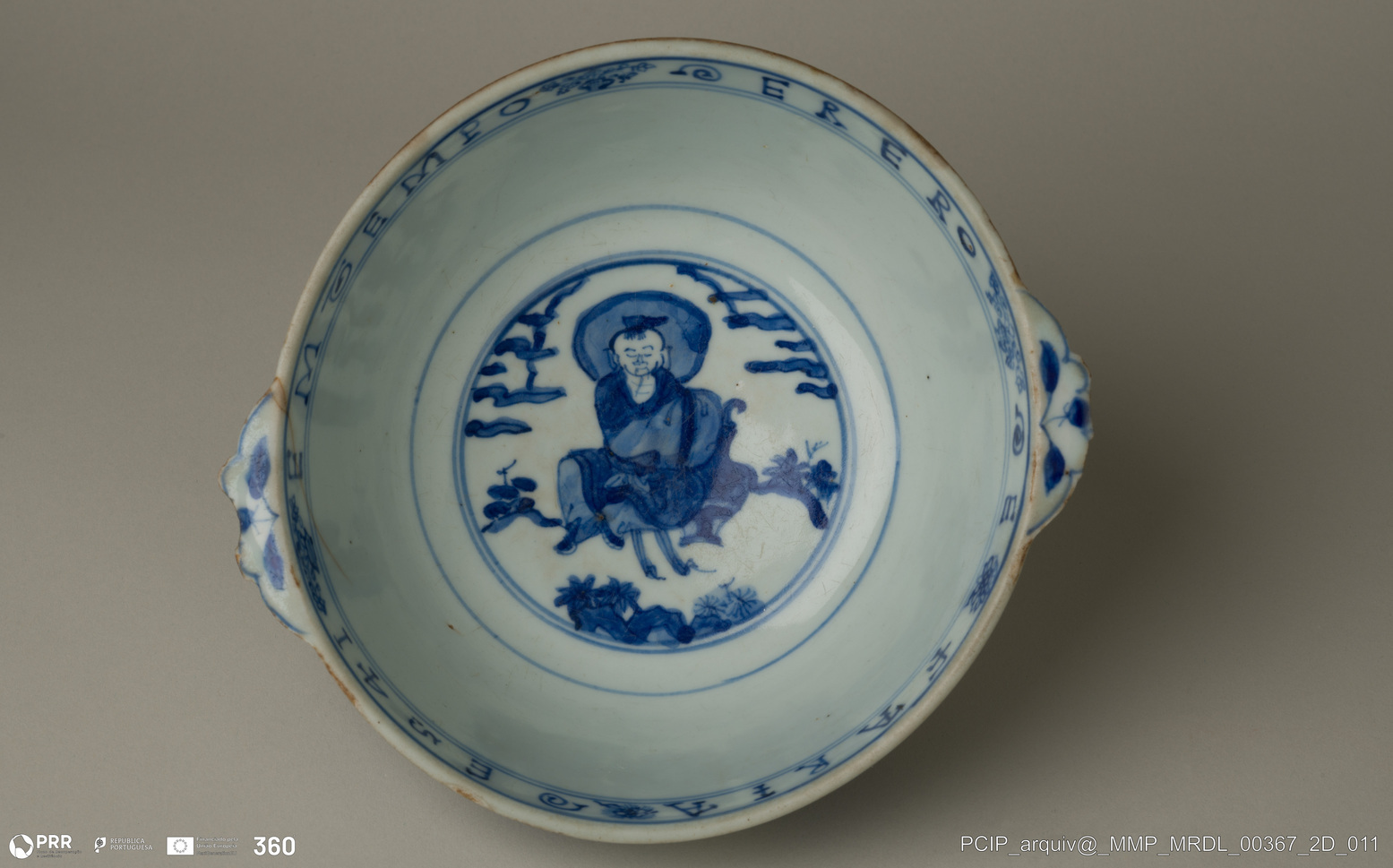 Matéria/Técnica: Porcelana; Cronologia: Séc. XVI; Autoria: Desconhecida; Dimensões: Altura: 7,84 cm; Diâmetro: 17,10 cm; Comprimento: 18,20 cm.