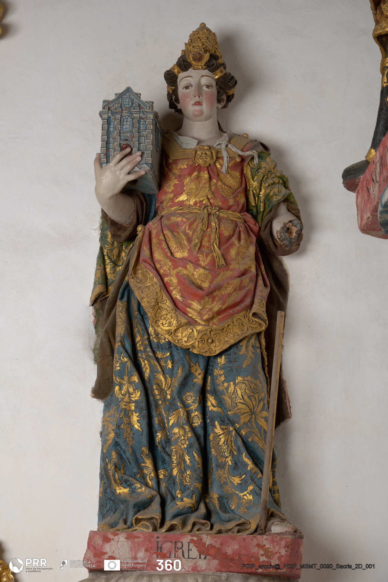 Matéria/Técnica: Terra cota polícroma / Escultura em barro; Cronologia: 1680 - 1683; Autoria: Frei Cipriano da Cruz; Dimensões (cm): 186 x 68.