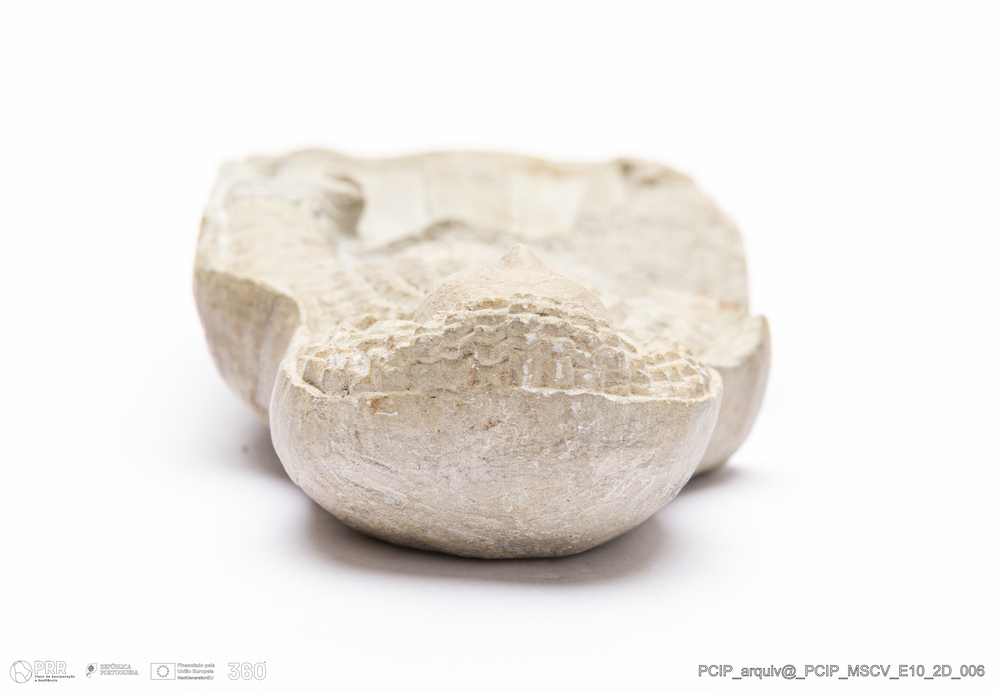 Matéria/Técnica: Pedra; Cronologia: Século XIV (?); Autoria: Desconhecida; Dimensões: Altura: 150mm; Largura: 77 mm; Profundidade: 25mm.