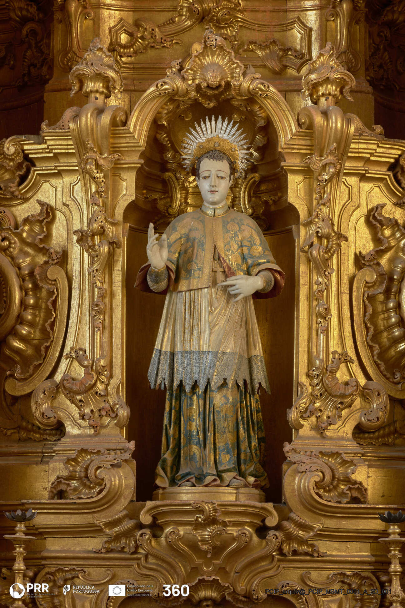 Matéria/Técnica: Madeira entalhada e dourada / Entalhamento e douramento; Cronologia: 1758 - 1761; Autoria: Frei José Santo António Vilaça; Dimensões (cm): 208 x 80.
