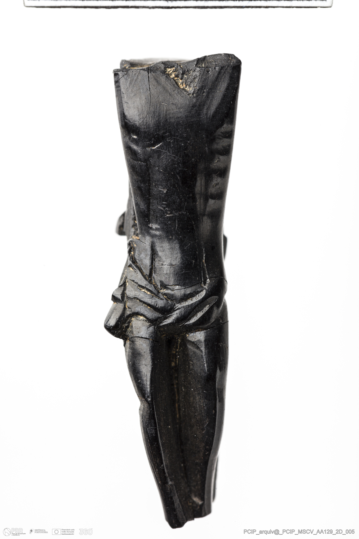 Matéria/Técnica: Azeviche; Cronologia: Desconhecida; Autoria: Desconhecida; Dimensões: Largura:8mm Altura / Espessura: 8mm Comprimento / Profundidade: 32mm.