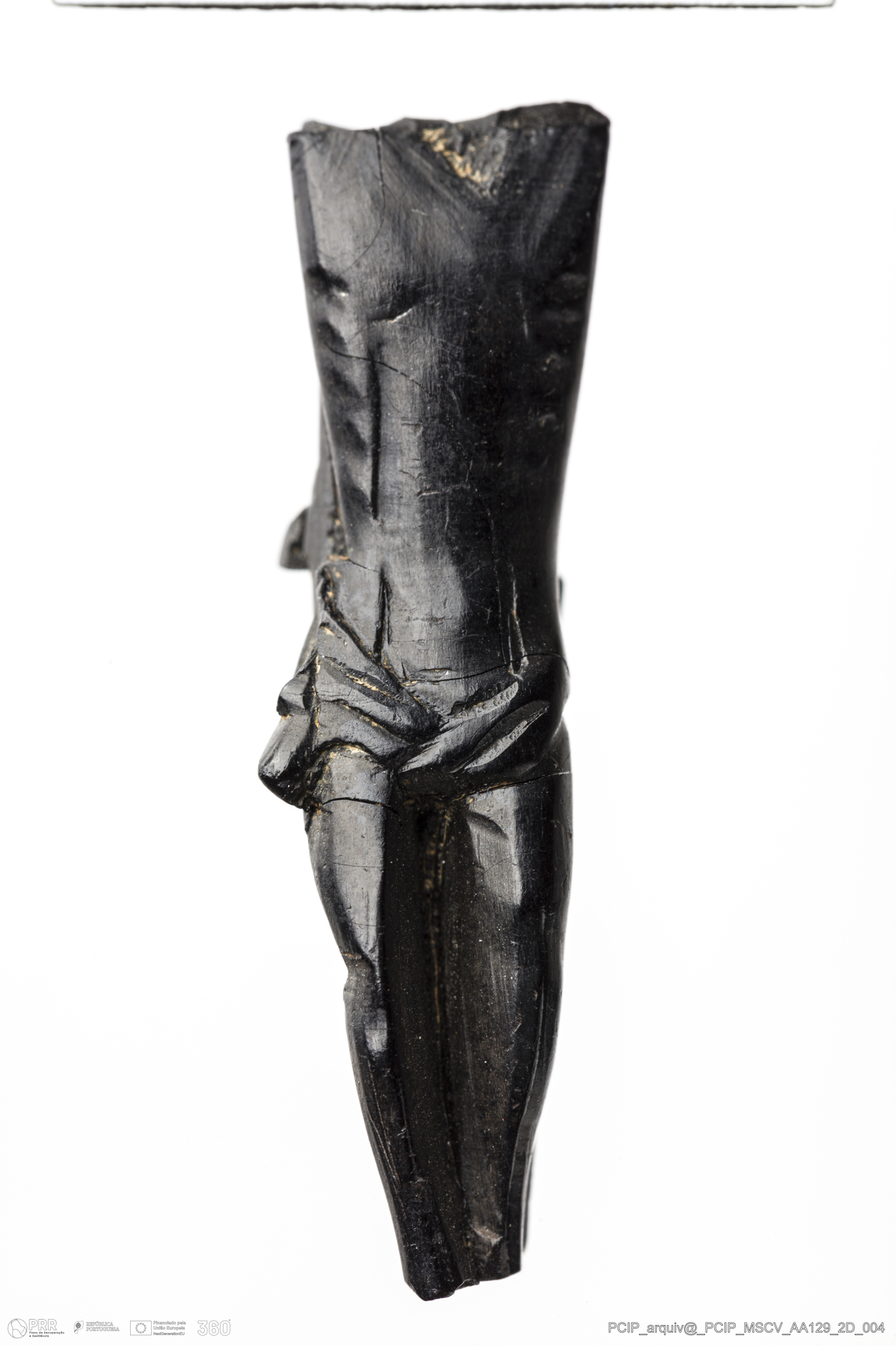 Matéria/Técnica: Azeviche; Cronologia: Desconhecida; Autoria: Desconhecida; Dimensões: Largura:8mm Altura / Espessura: 8mm Comprimento / Profundidade: 32mm.