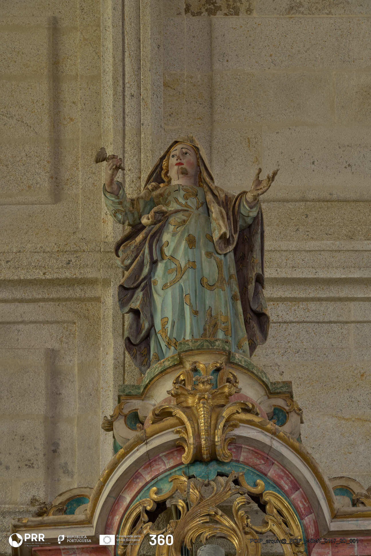 Matéria/Técnica: Madeira polícroma / Escultura; Cronologia: 1783-1786; Autoria: Frei José Santo António Vilaça; Dimensões (cm): 200 x 90.