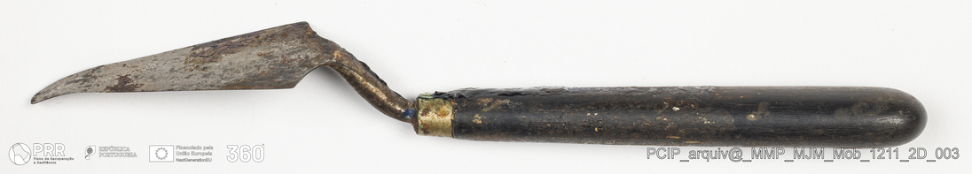 Matéria/Técnica: Metal e madeira; Cronologia: Desconhecida; Autoria: Desconhecida; Dimensões: 16 x 2,3 x 9 cm.