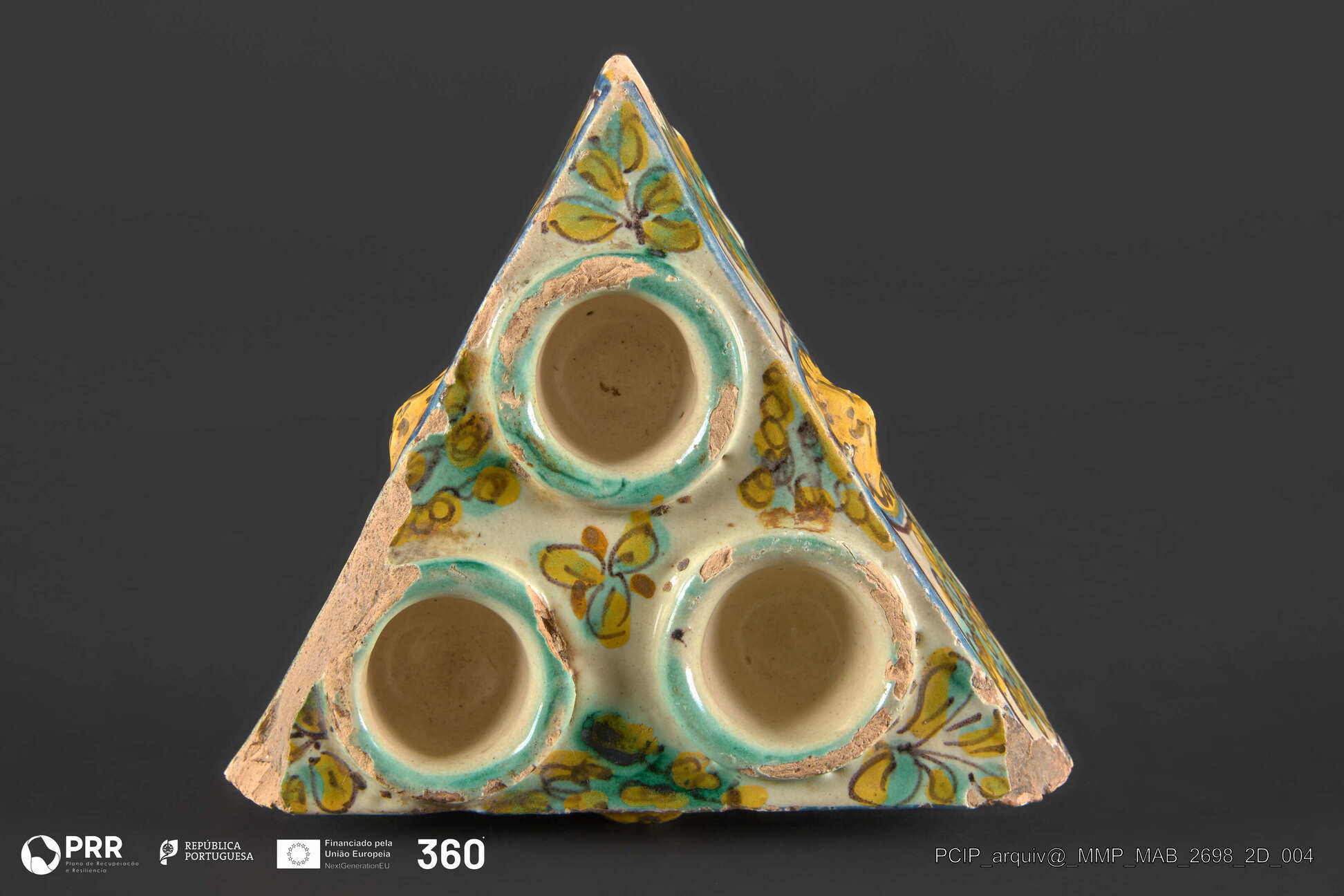 Matéria/Técnica: Faiança policroma, moldada e vidrada; Cronologia: Desconhecida; Autoria: Desconhecida; Dimensões: Desconhecidas.
