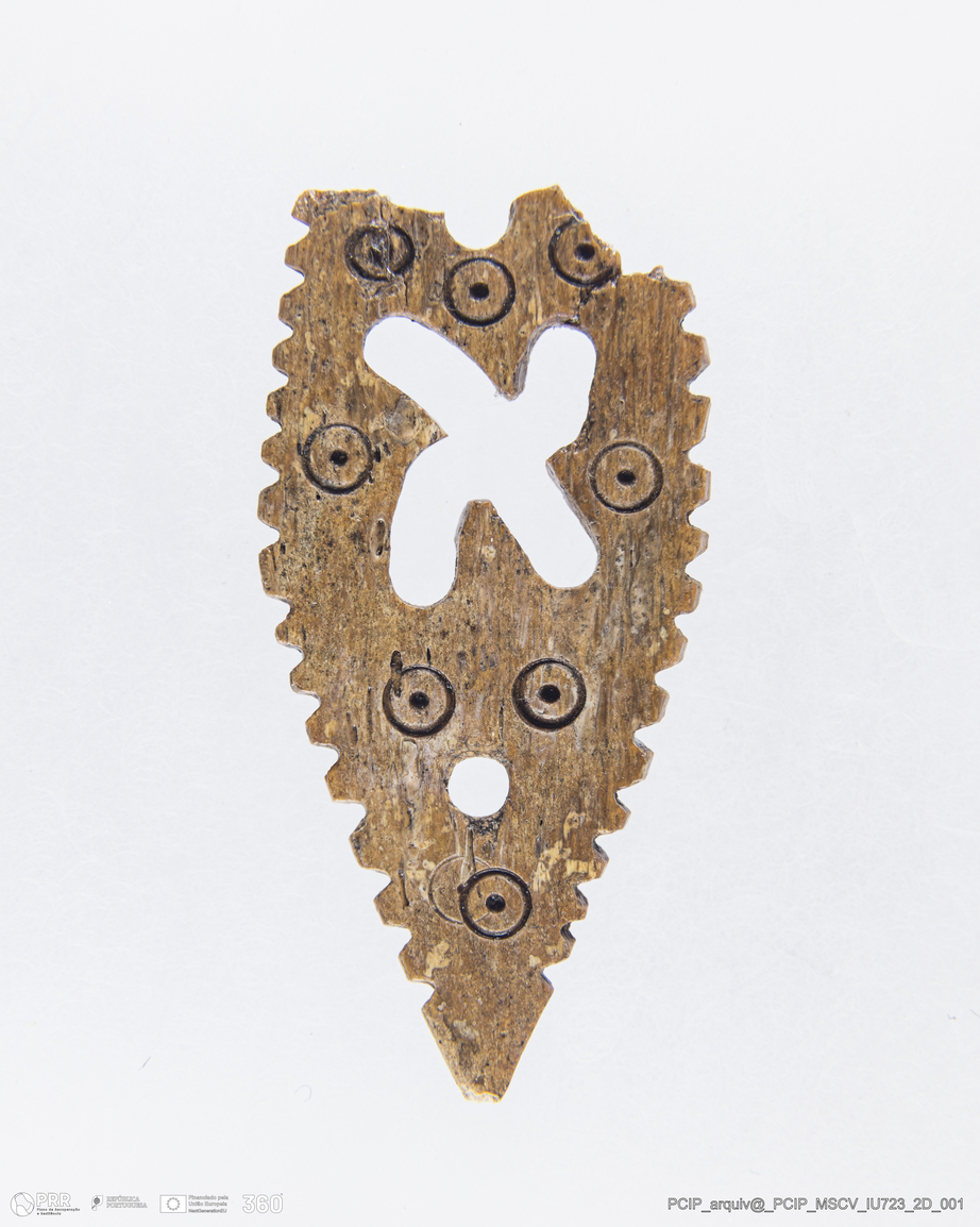 Matéria/Técnica: Madeira; Cronologia: Século XVII; Autoria: Desconhecida; Dimensões: Comprimento: 32mm; Largura: 15mm; Espessura -2mm.