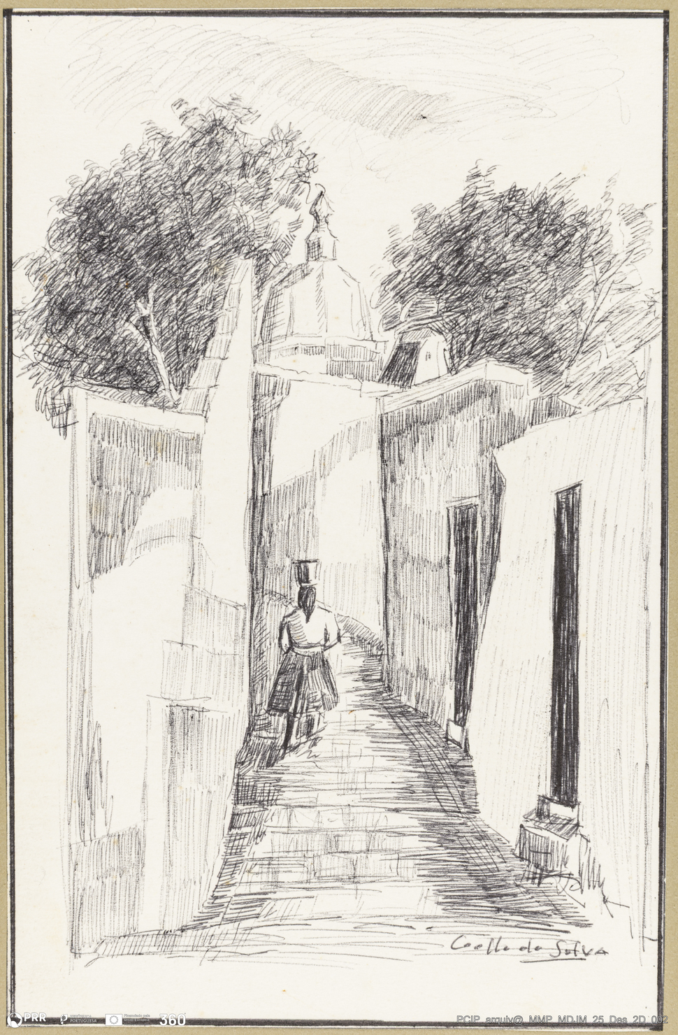 Matéria/Técnica: Tinta da china sobre papel; Cronologia: Séc. XX; Autoria: Manuel Coelho da Silva; Dimensões: Altura: 23,6 cm x Largura: 15,5 cm.