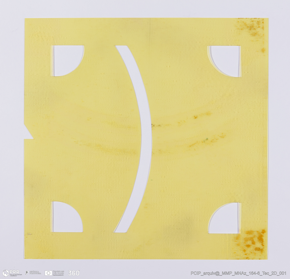 Matéria/ Técnica: Acetato; Cronologia: 1949; Autoria: Almada Negreiros, José Sobral de (Trindade, S.Tomé e Príncipe, 7 de Abril de 1893 - Lisboa, 15 de Junho de 1970); Dimensões (cm): Altura: 18; Largura: 18; Outras dimensões Estampilha: 18 x 18 cm; Desenho: 13,5 x 13,5 cm.