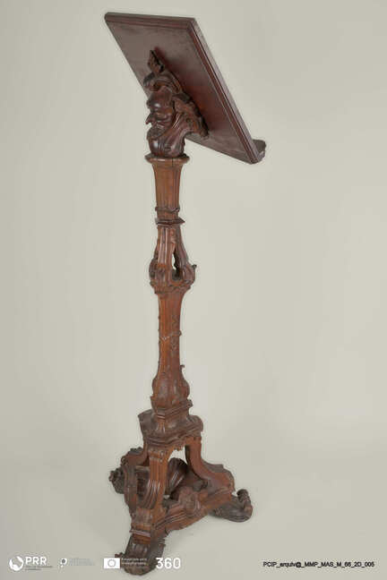 Matéria/Técnica: Madeira entalhada; Cronologia: Século XVIII; Autoria: Desconhecida; Dimensões (cm): Altura: 147,5; Comprimento: 50; bissetriz - 45.