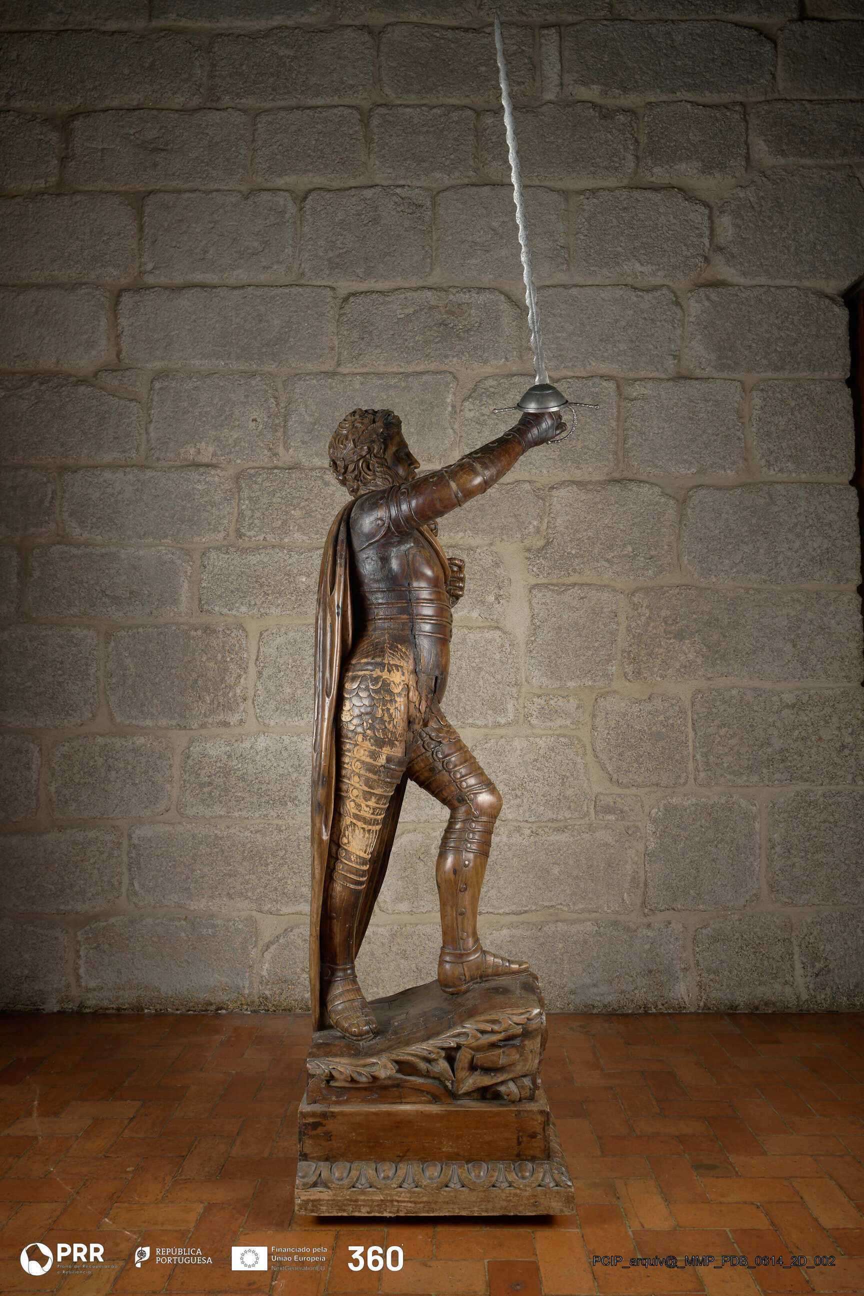 Matéria/Técnica: Escultura de Vulto Pleno. Talhada; Cronologia: Século XVII; Autoria: Desconhecida; Dimensões (cm): Altura: Com rodas 214; sem rodas 210; Diâmetro: altura do braço esquerdo- 146; da cabeça- 14,4.
