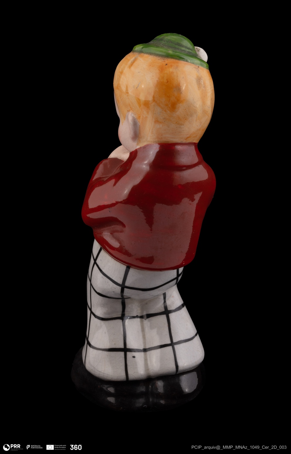 Matéria/ Técnica: Barro branco; Cronologia: Século XX; Autoria: Desconhecida; Dimensões (cm): Altura: 15; Largura: 6; Profundidade: 7.
