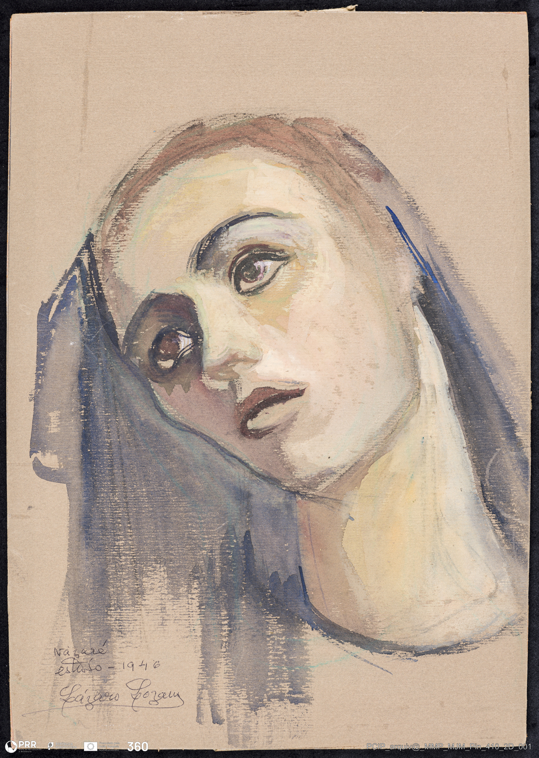 Matéria/Técnica: Gouache sobre cartão colado em madeira prensada; Cronologia: 1946; Autoria: Bonifácio Lázaro Lozano (1906-1999); Dimensões: 41 x 28,5 cm.