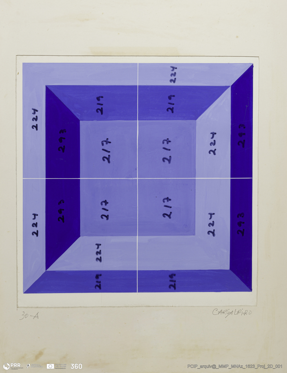 Matéria/ Técnica: Papel; Cronologia: 1983; Autoria: Cargaleiro, Manuel (Vila Velha de Rodão, 1927 - 2024 ); Dimensões (cm): Altura: 28cm; Largura: 28cm.