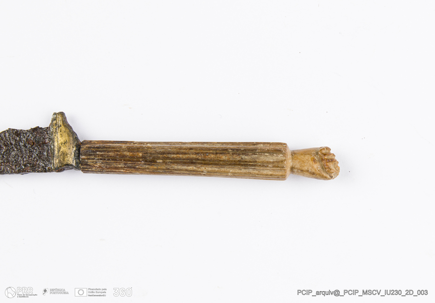 Matéria/Técnica: Metal e osso; Cronologia: Desconhecida; Autoria: Desconhecida; Dimensões: Comprimento: 47mm; Largura: 13mm.
