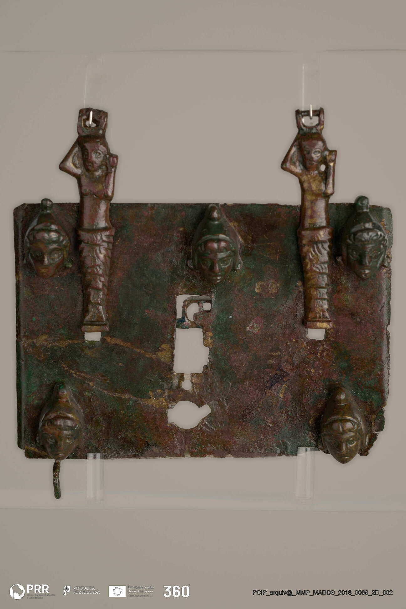 Matéria/Técnica: Bronze; Cronologia: Século II a.C; Autoria: Desconhecida; Dimensões (cm): 11 x 11 x 2.